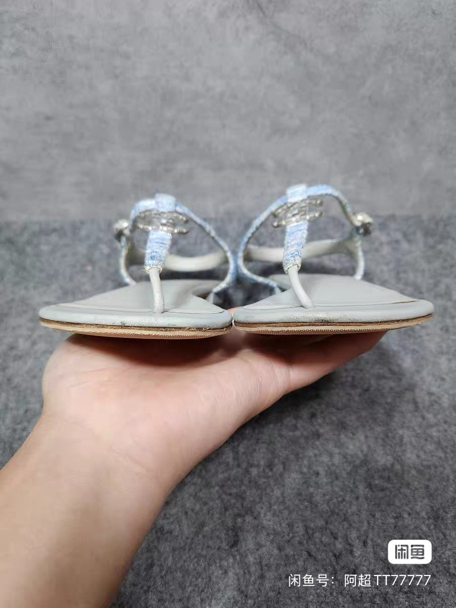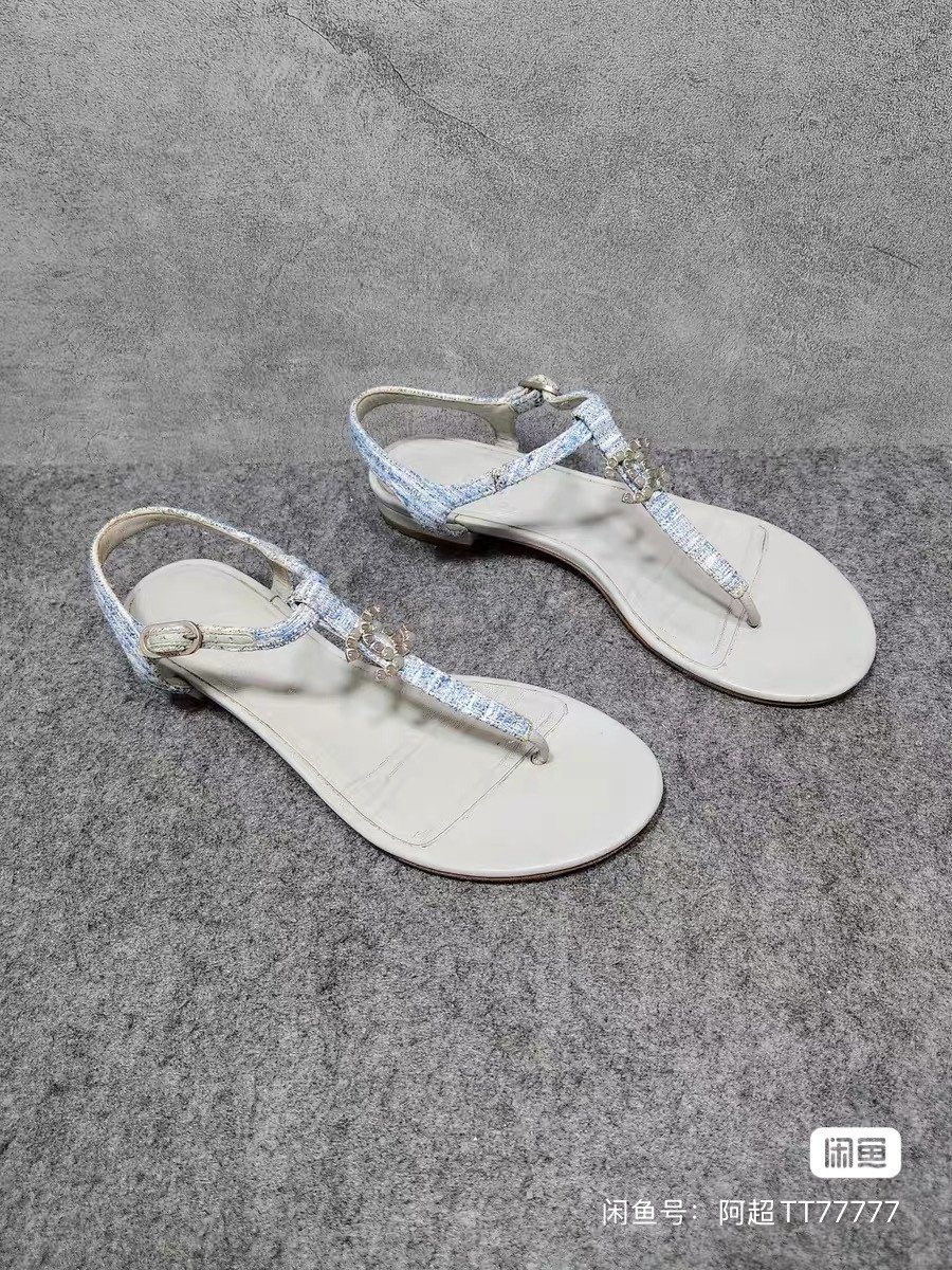 Chanel blue fabric logo comfortable and versatile flat-toe buckle sandals. Women's shoes size 36.5. The overall color can also be customized for 85 new.
