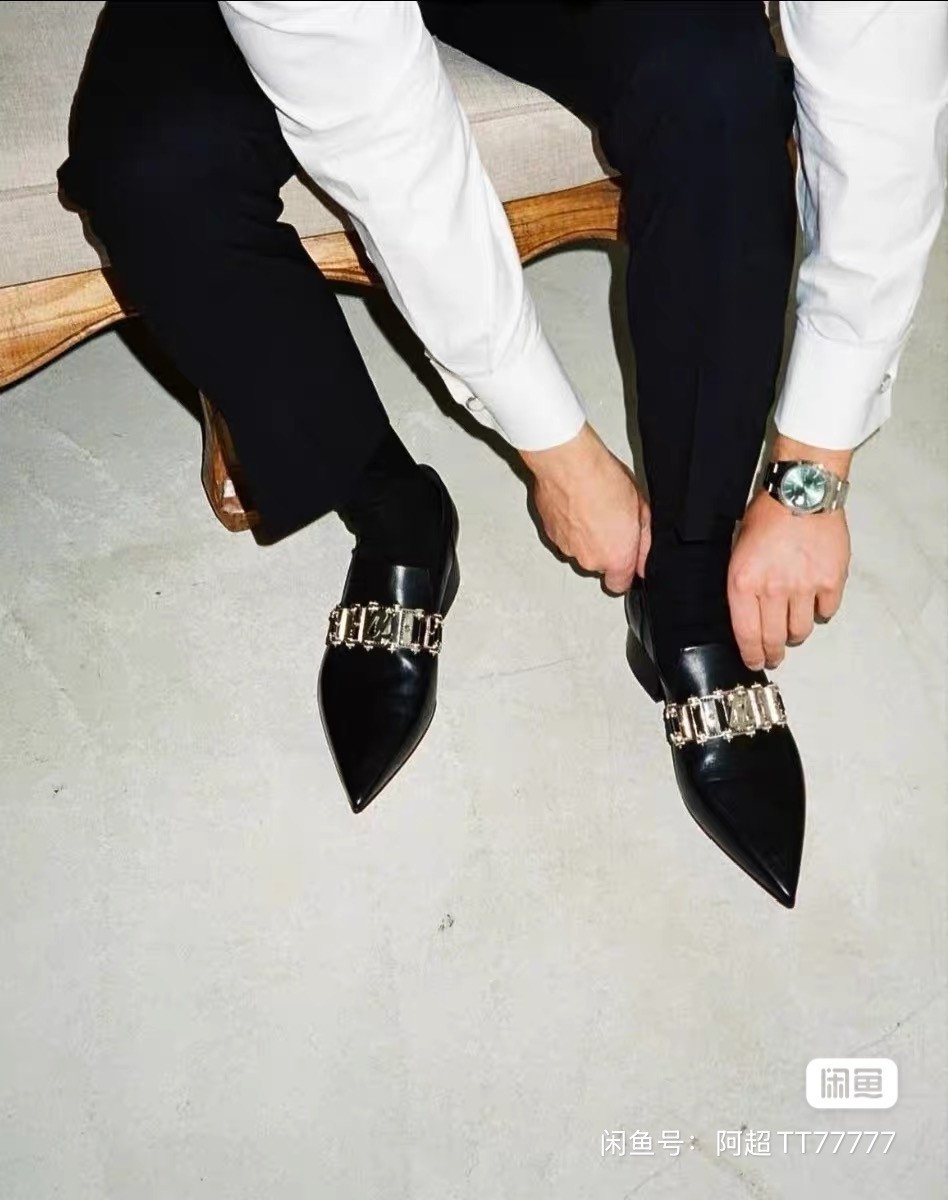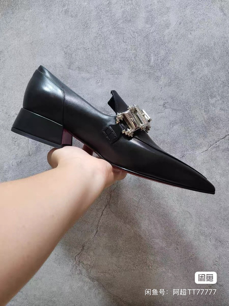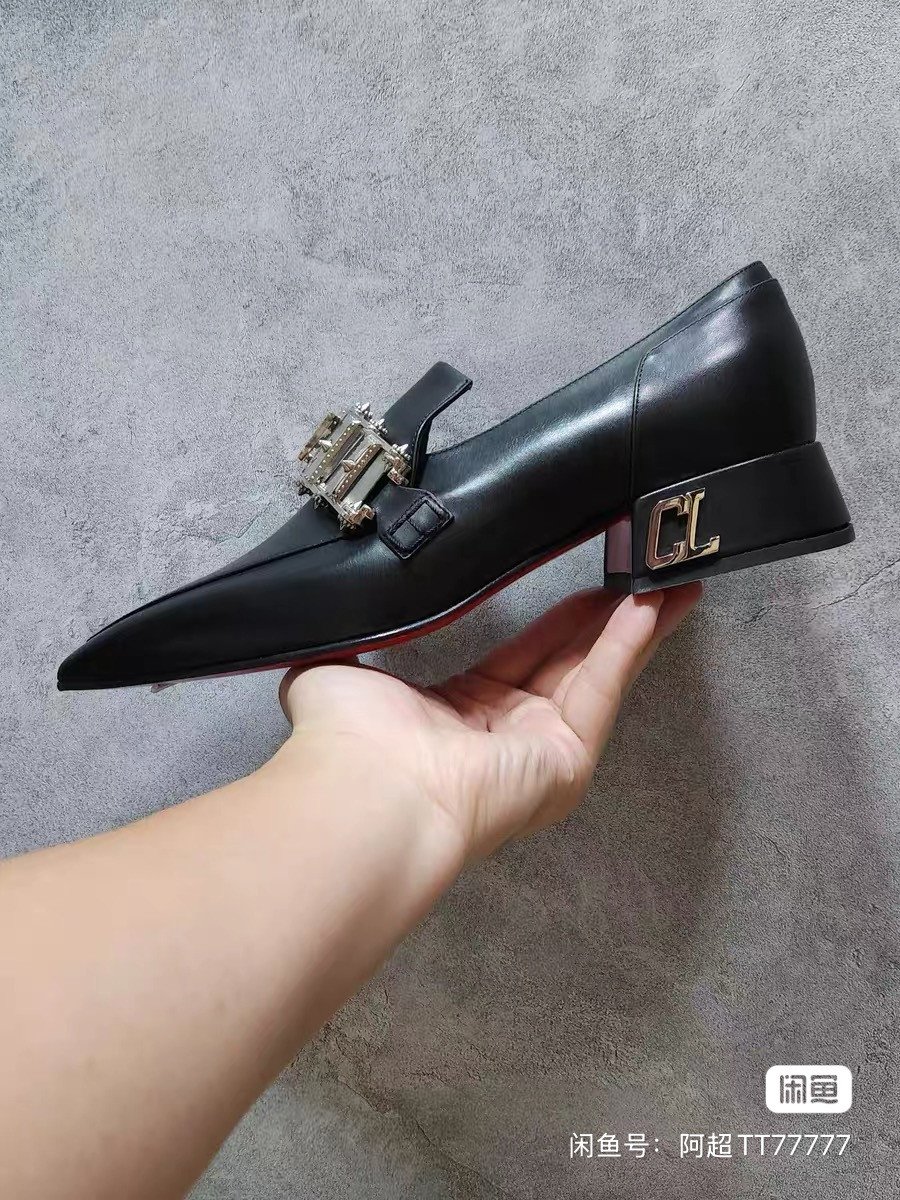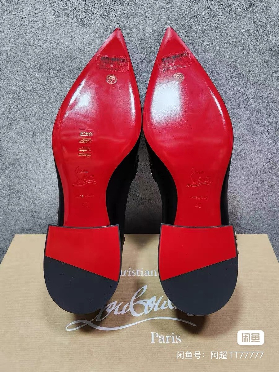 Christian Louboutin CL black cowhide pointed toe metal logo decoration casual one-pedal loafers leather shoes red-soled shoes. Men's shoes are size 39 and 40 available, and the inner length of the shoes is 262. Brand new and unworn, a full set can be given away.