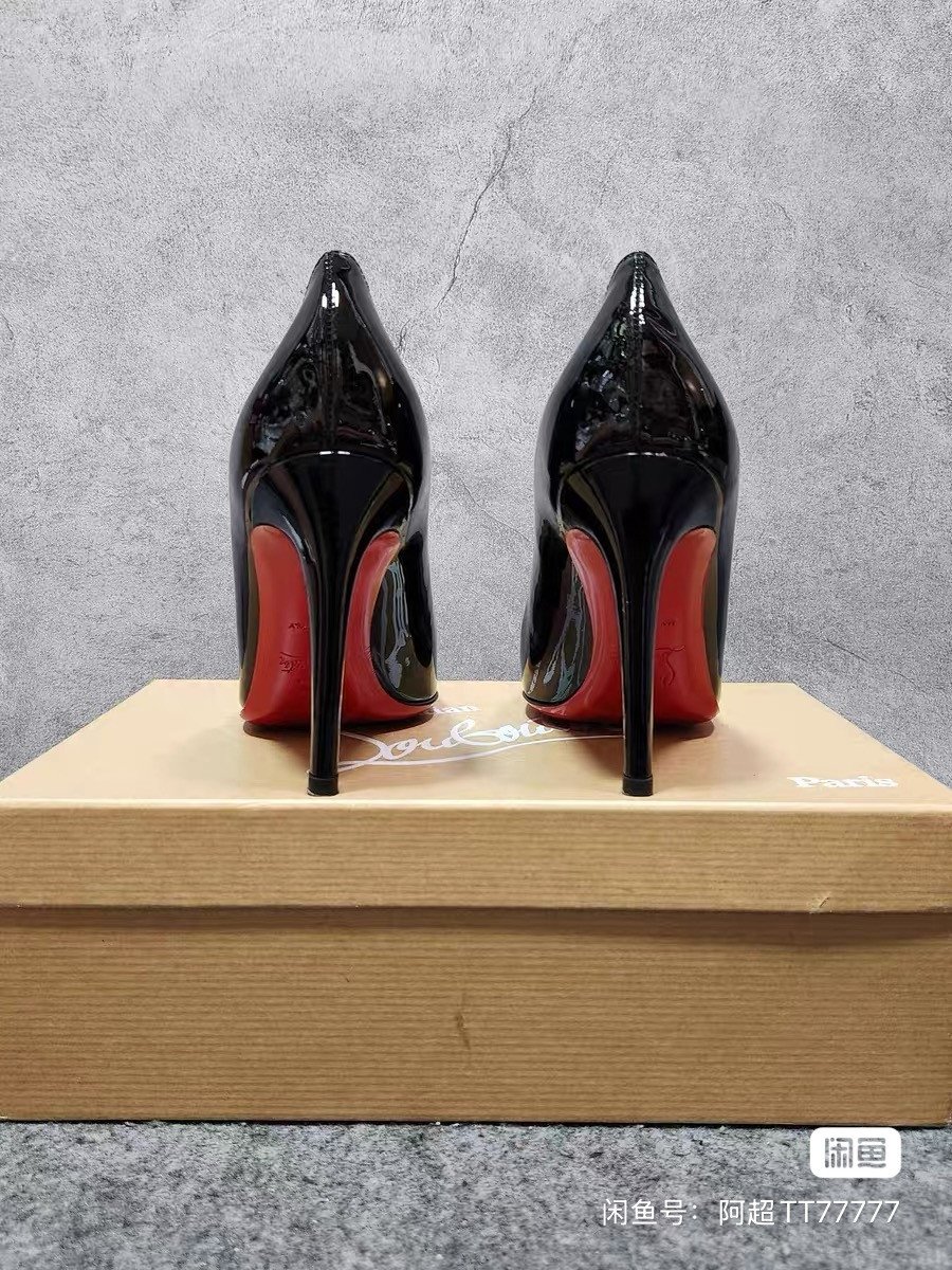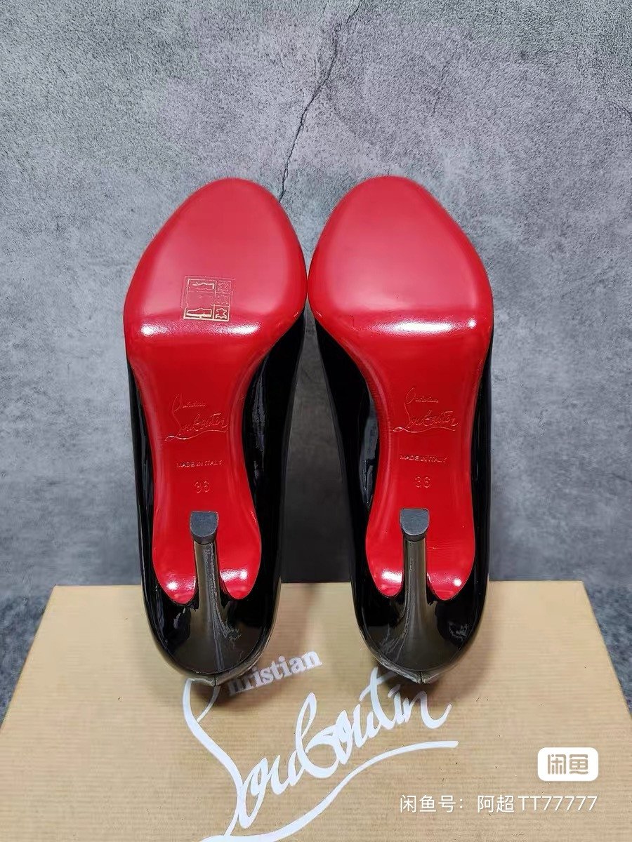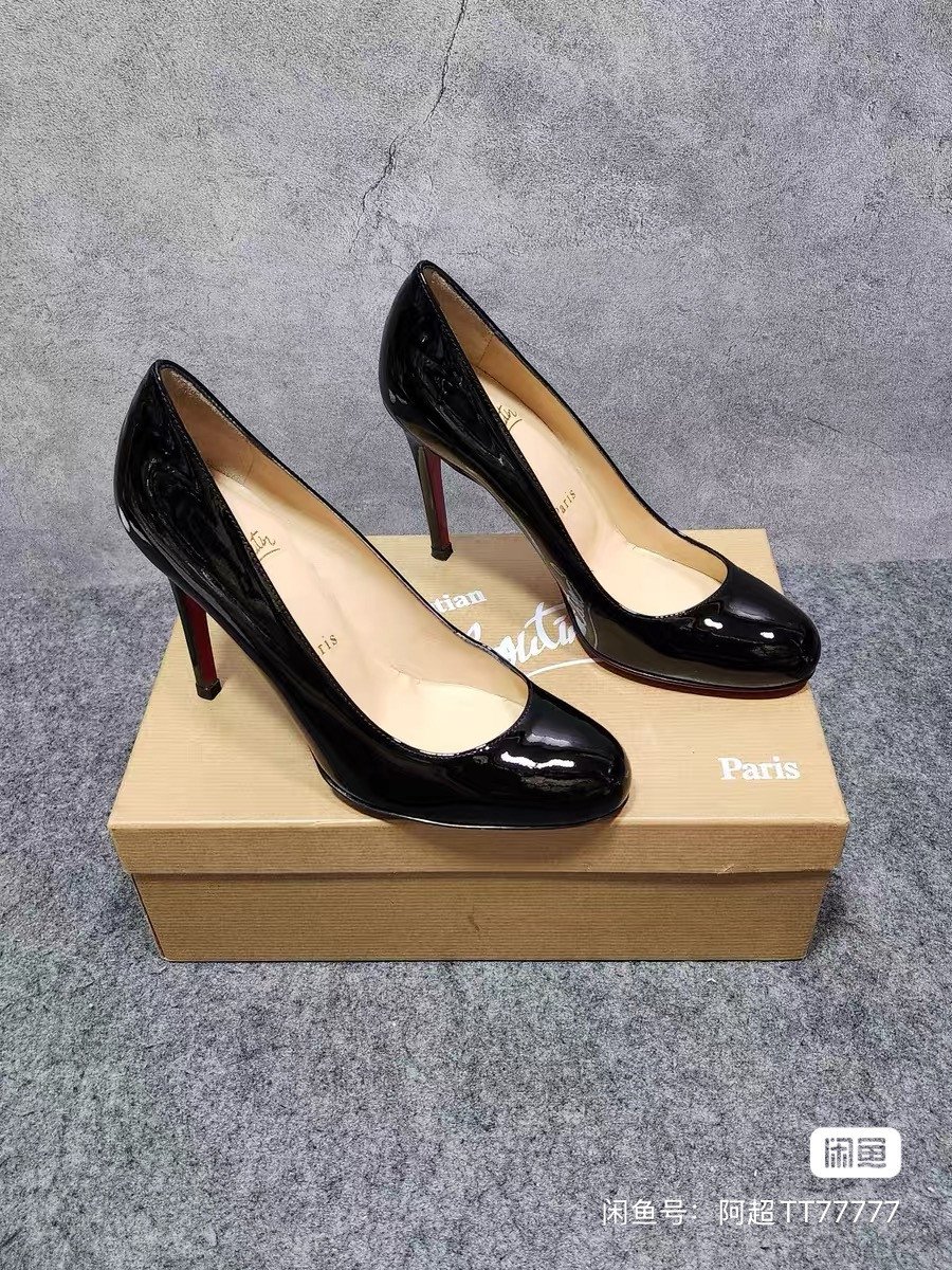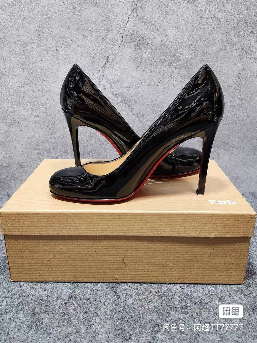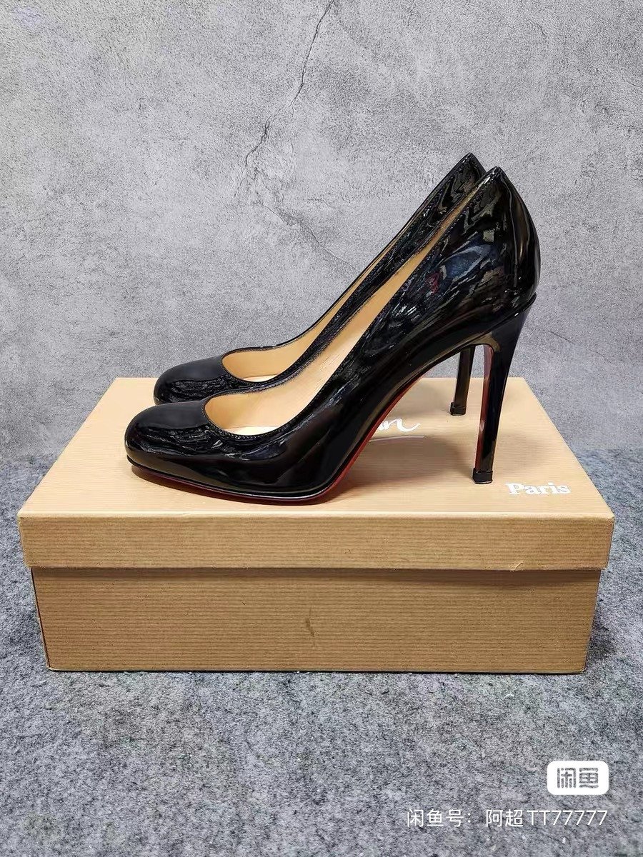 Christian louboutin CL black patent leather round toe shallow thin heel red sole shoes. Women's shoes size 36, with a heel height of 10cm. Brand-new try-on, slight storage marks on the sole.