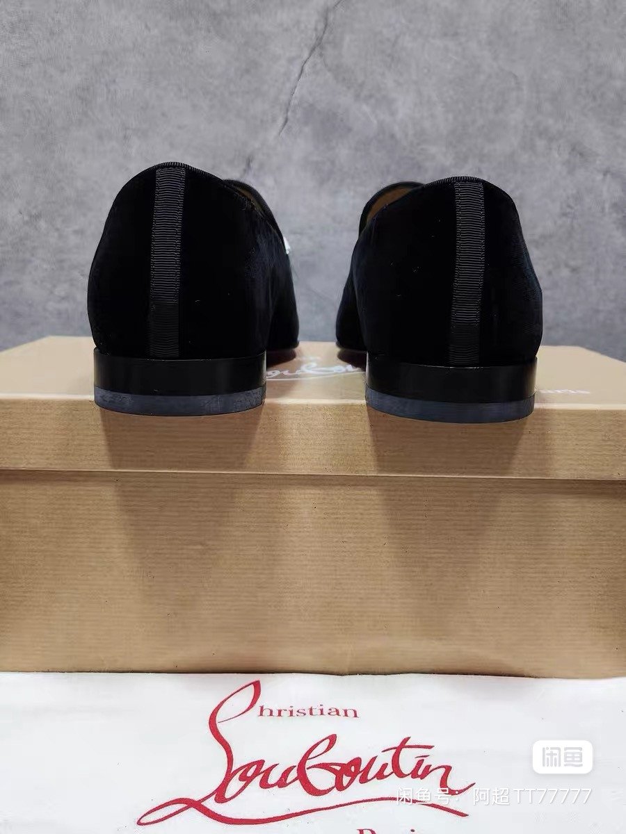 Christian louboutin CL black suede metal rivet decoration cover casual one-footed loafers red-soled shoes. Men's shoes are size 43, and the inner length of the shoes is 287. Brand new and unworn, Figure 7 slight storage marks on the sole. The original price of the counter is 619,833 CFA, with an original shoe box and a dustproof bag. Second-hand goods are not brand-new, so don't disturb perfectionists. Guarantee genuine products and support any identification. If you have any questions, please communicate in advance. Luxury second-hand items will be sent by Express. Please sign for them in person. After signing, they will not be returned or exchanged except for the authenticity issue.
