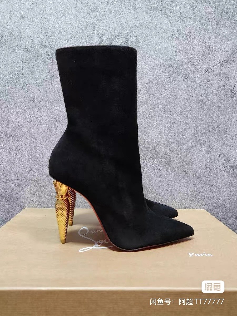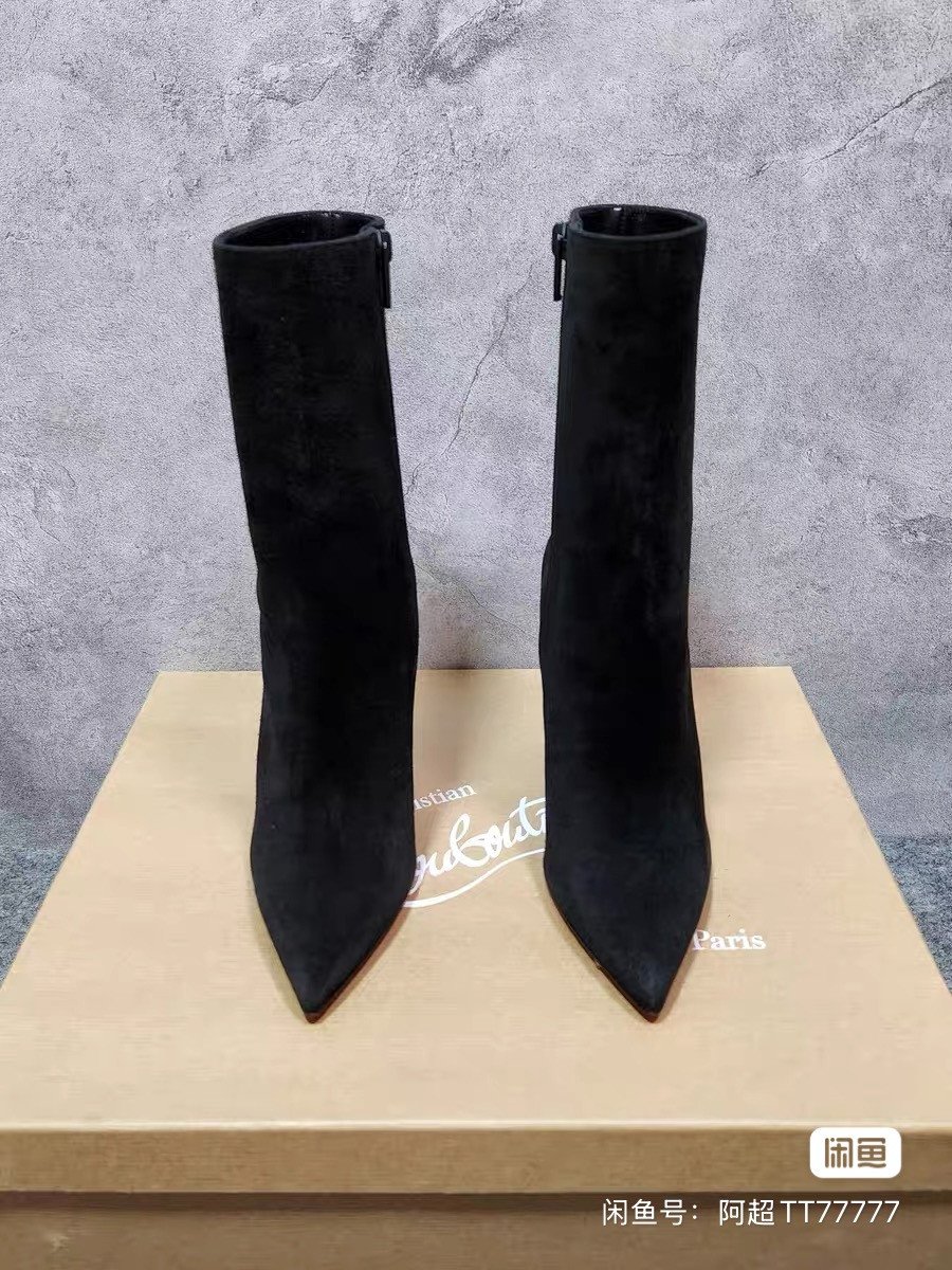 Christian Louboutin CL black suede gold scepter side zipper pointed toe high heels wedding shoes red sole shoes. Women's shoes size 37.5, with a heel height of 10cm. Brand new and unworn, a large set can be given as a gift.