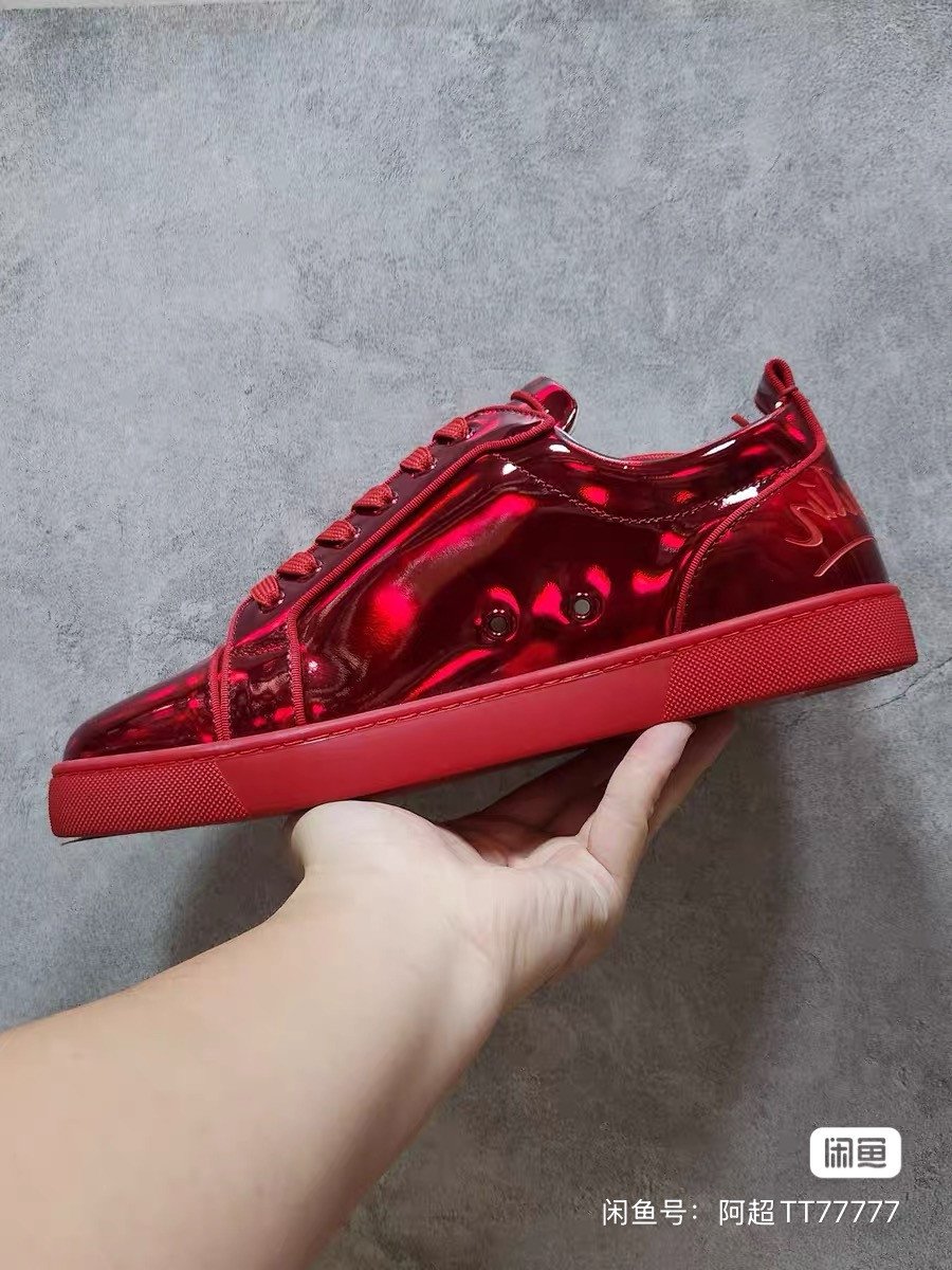 Christian louboutin CL bright red patent leather low-top lacing heel letter logo casual sports shoes red sole shoes. Men's shoes are size 42.5, and the insole length is 282. Brand new and unworn, a large set can be given as a gift.