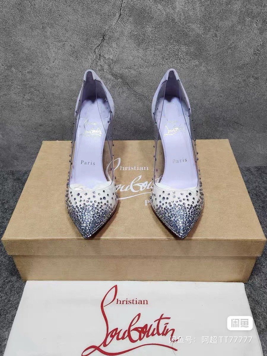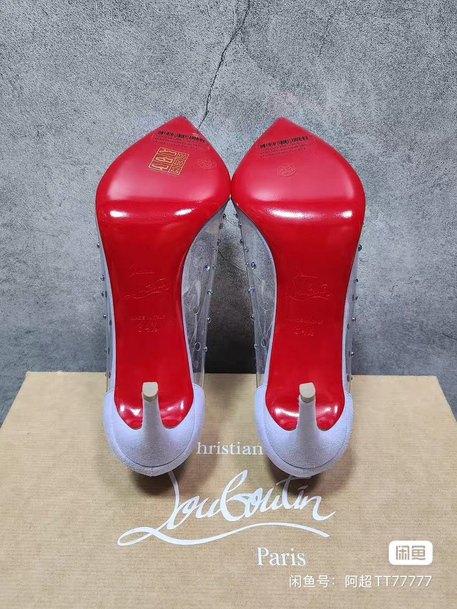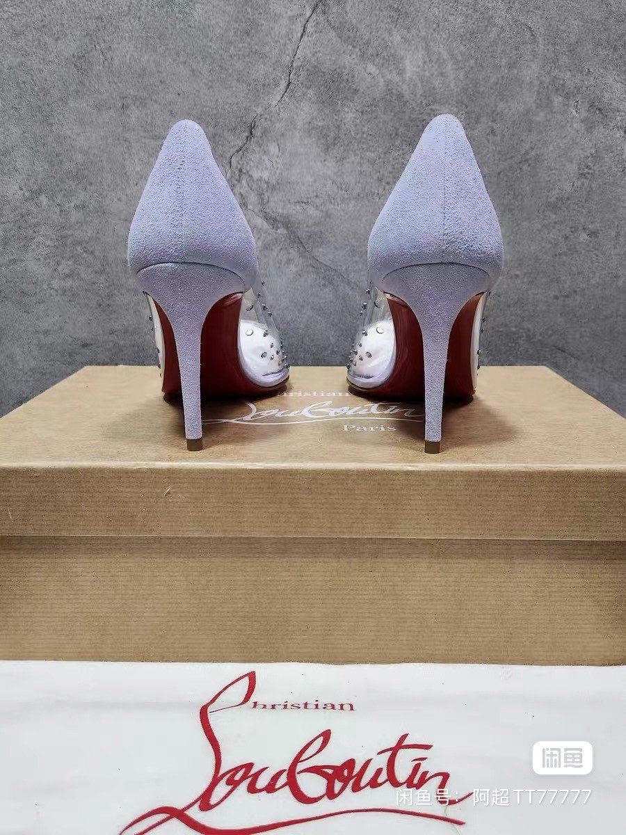 Christian louboutin CL lilac purple suede pointed toe PVC crystal full diamond thin heel high heels wedding shoes red sole shoes. Women's shoes size 34.5, with a heel height of 85mm. Brand new and unworn, a full set can be given away.