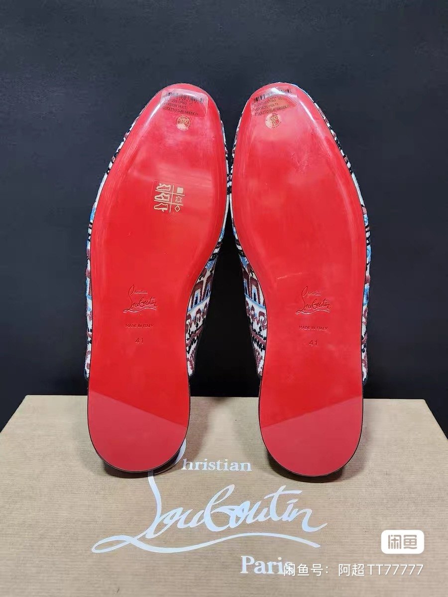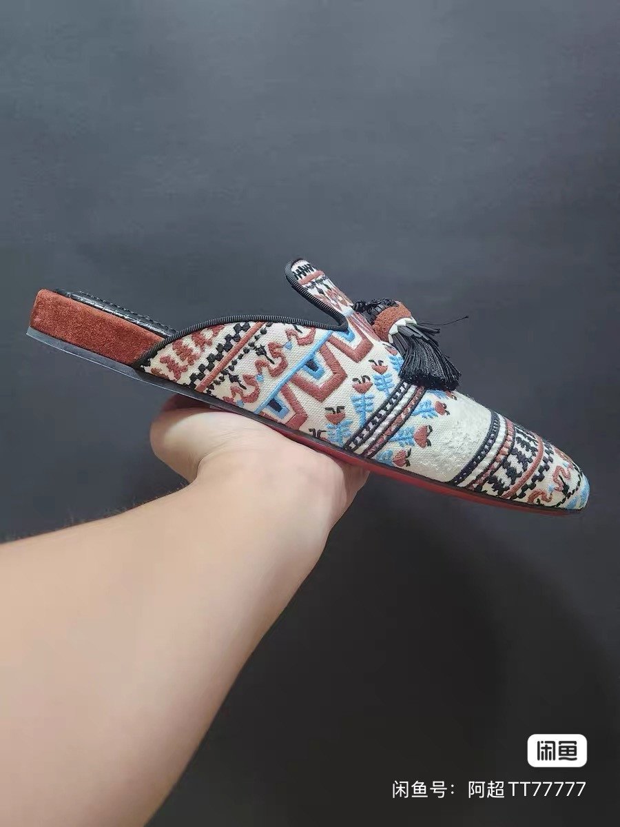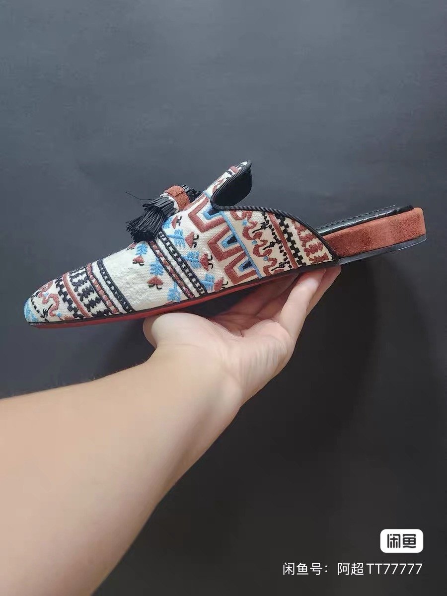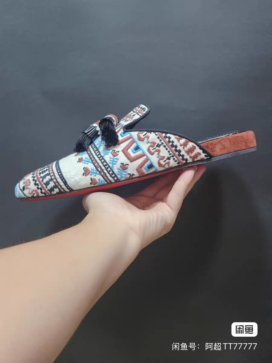 Christian Louboutin CL limited edition multi-color cotton embroidered mules flat shoes bag head slippers red sole shoes.