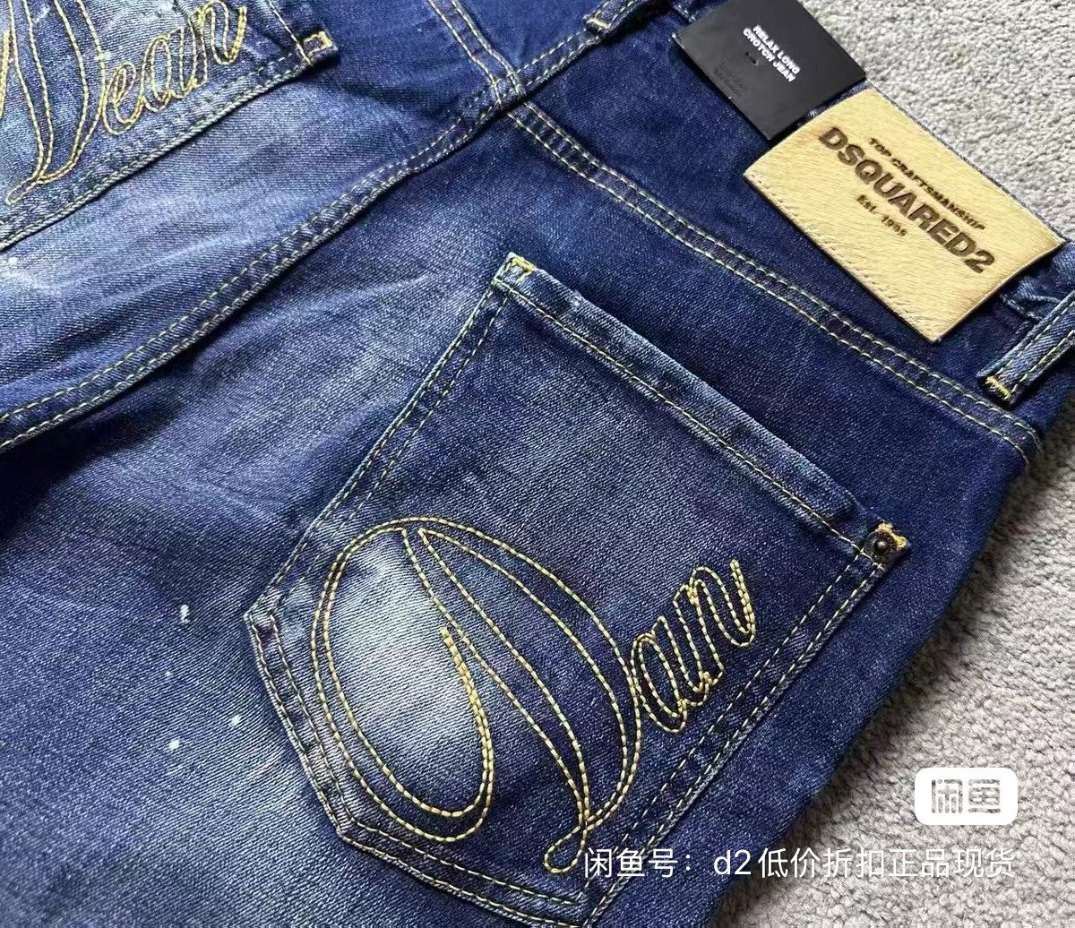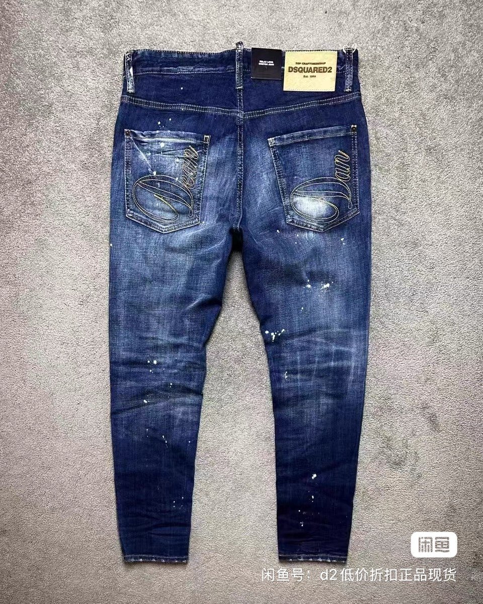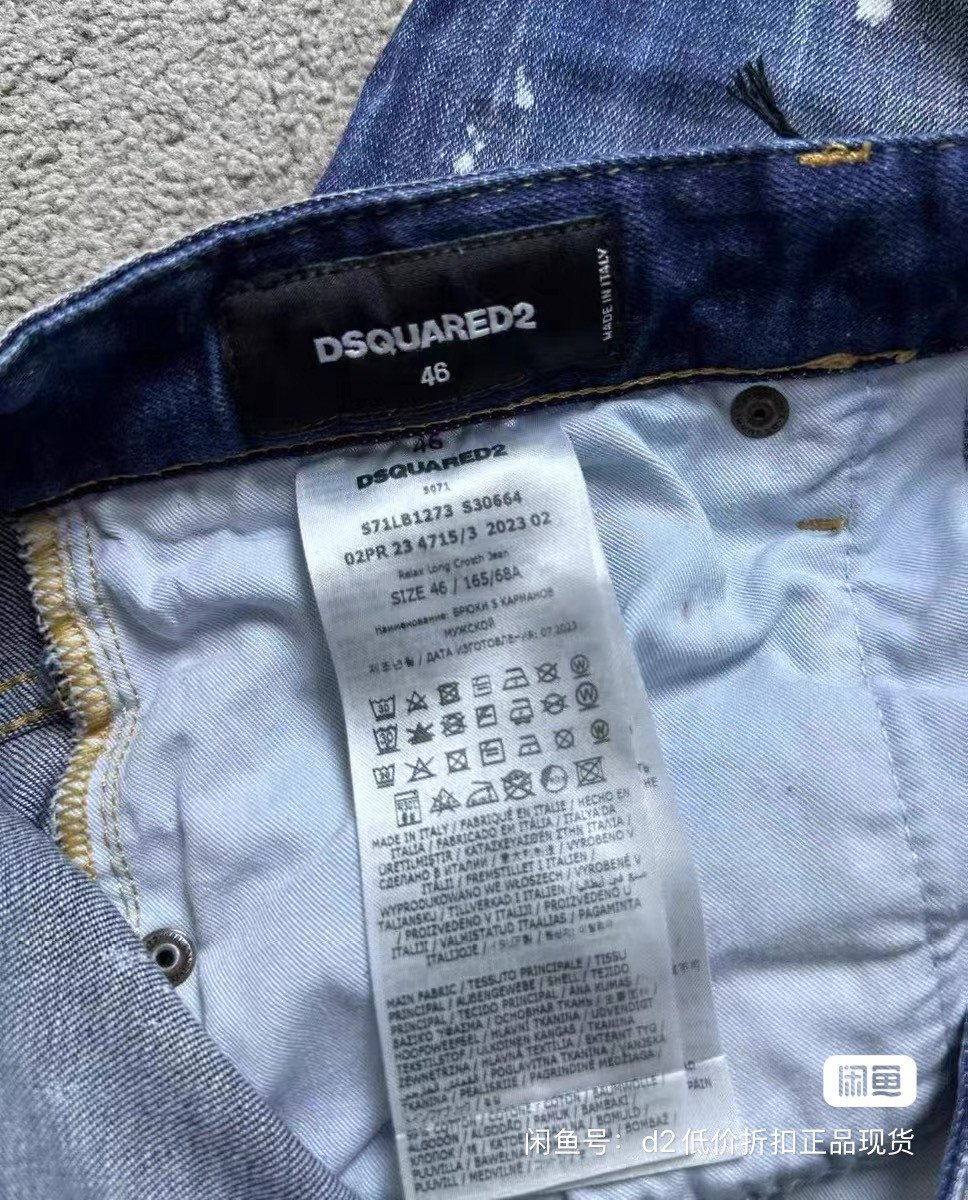 DSQUARED2 jeans, made in Italy, fashionable style. There is also a small amount of elastic fiber. The detailed design is unique, with white spray paint and gold embroidered logo, full of personality. Brand new and unworn, no obvious wear. Transfer in good faith. Support inspection, no refund or exchange..