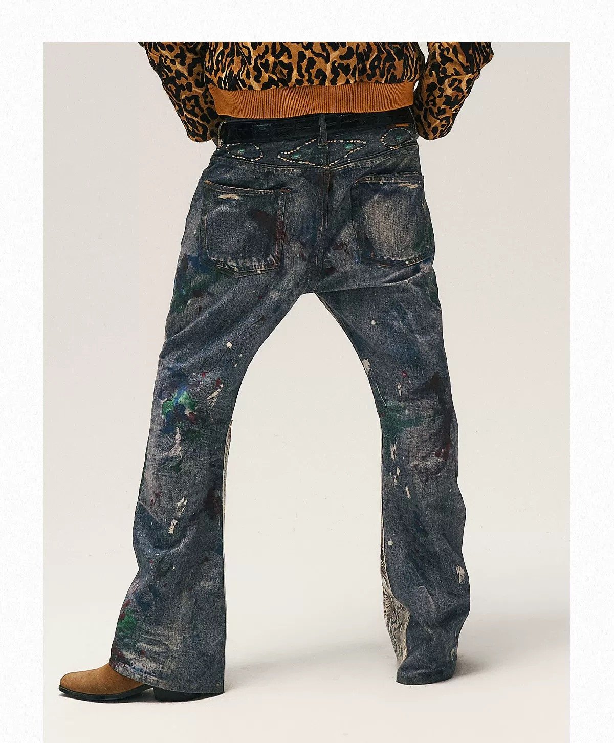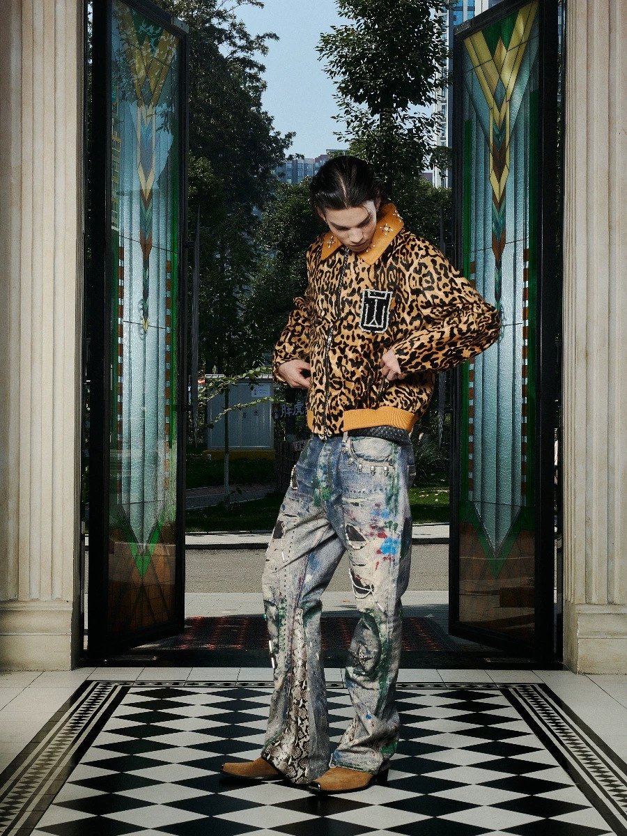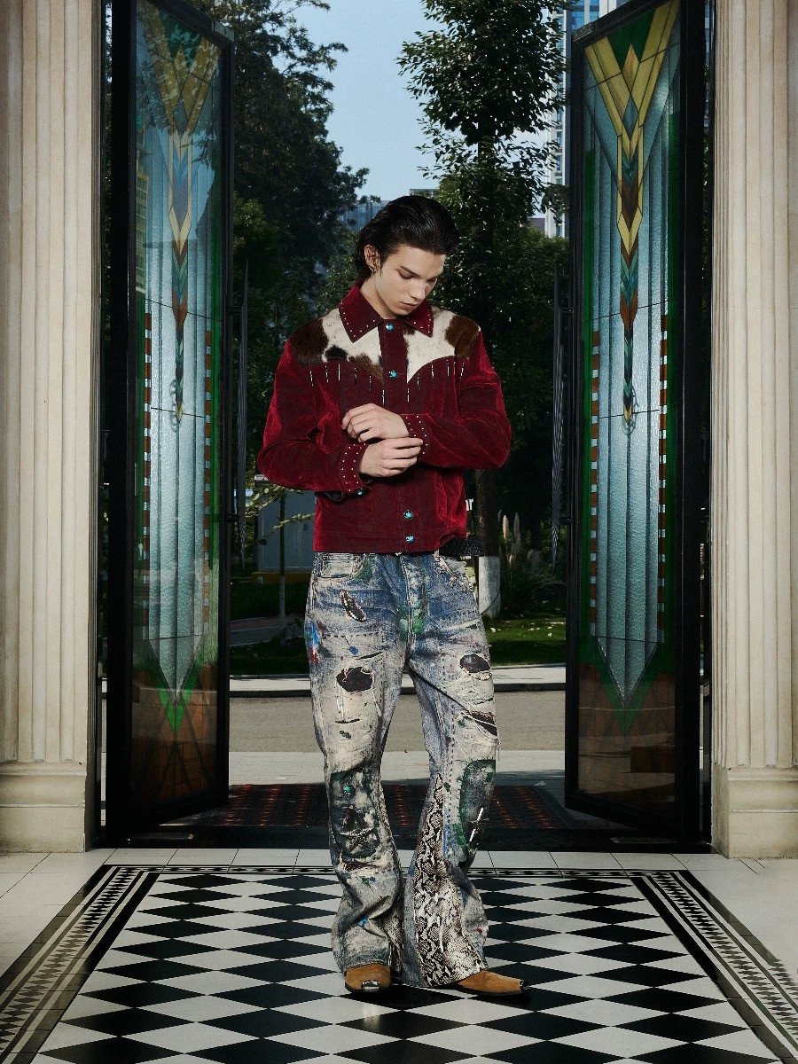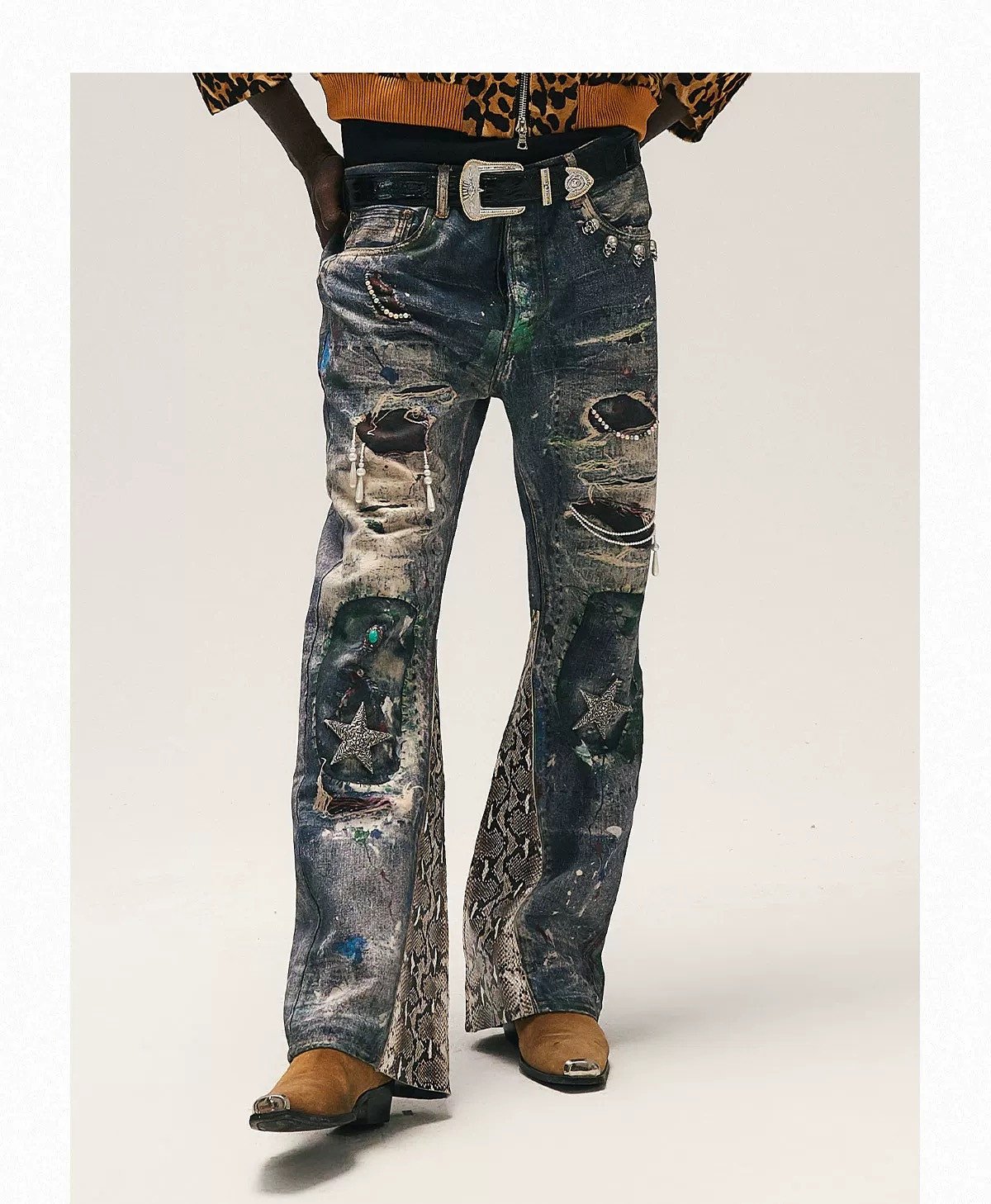 GLACIERBOY丨"RAP STAR" SERIES 3D printed snake pattern stitching brushed jeans