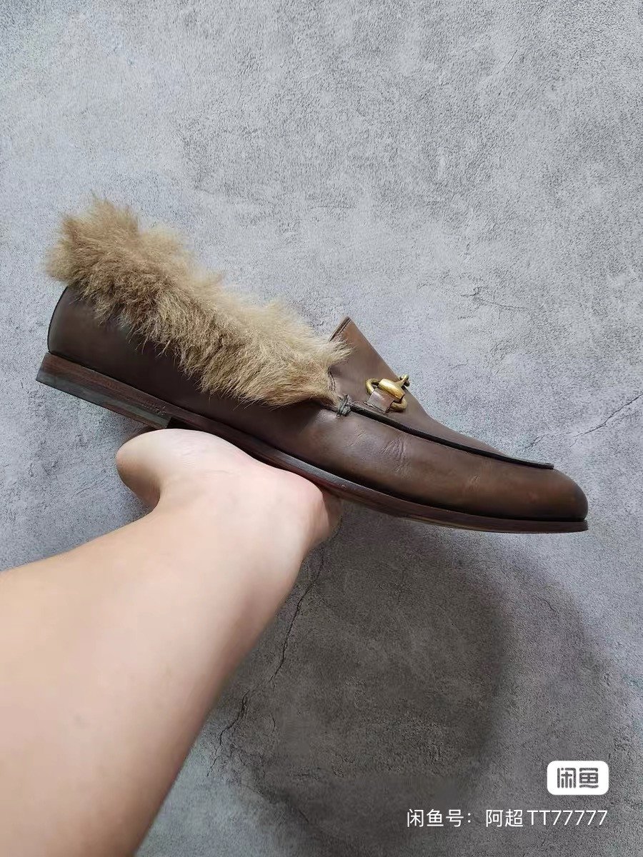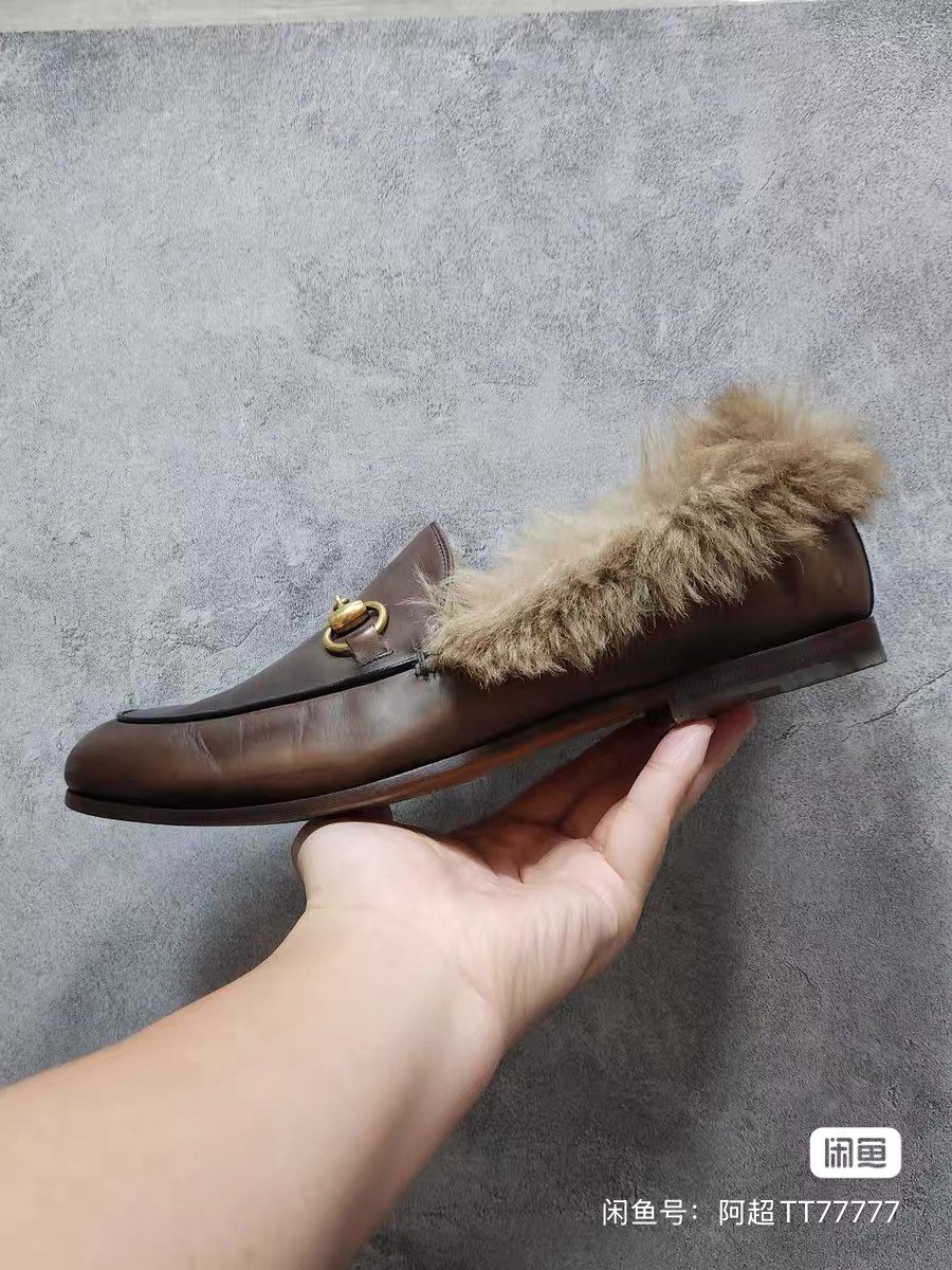 Gucci Jordaan series brown leather plush lightweight and comfortable casual shoes loafers.