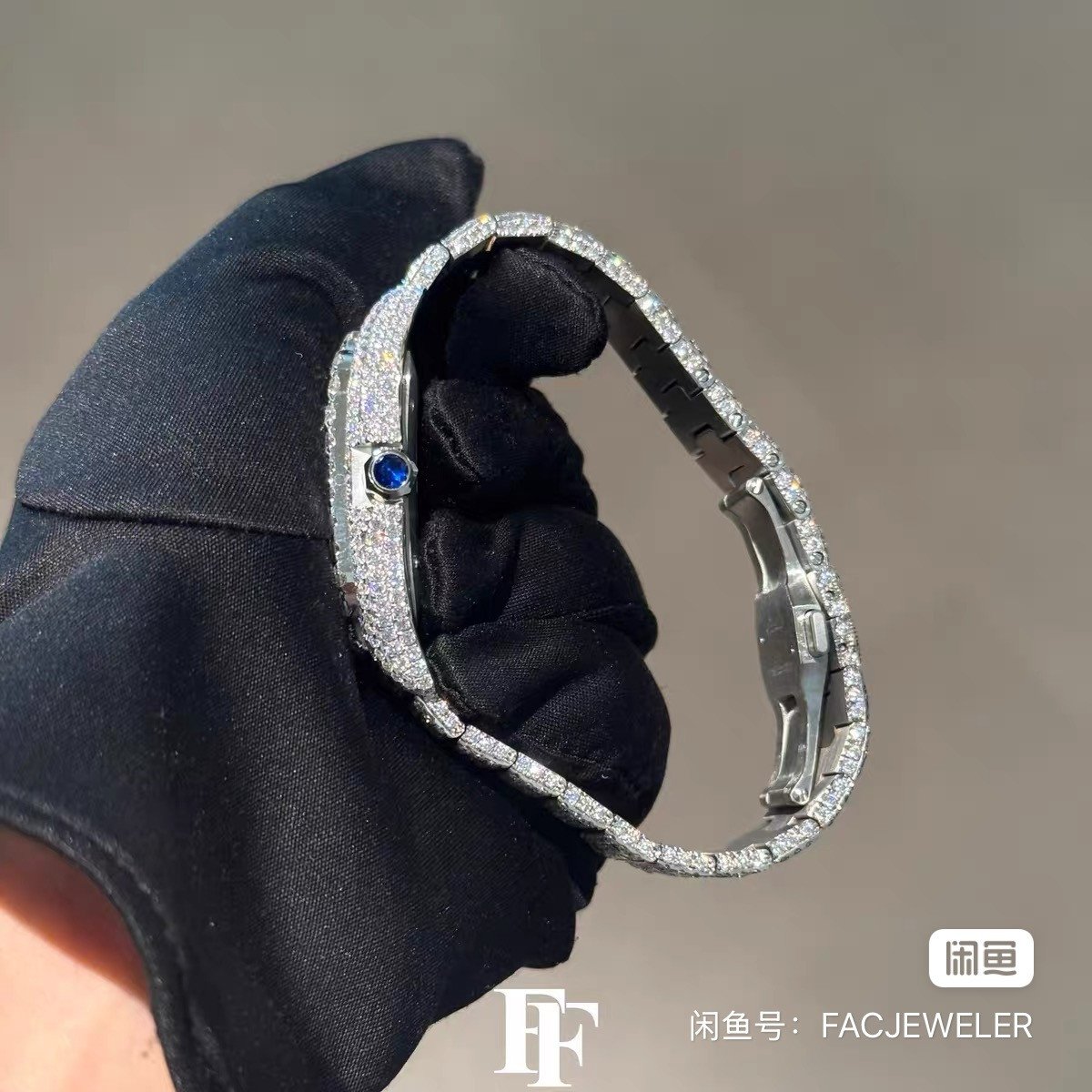 Back inlaid with diamonds Cartier Santos Brush font dial in stock one