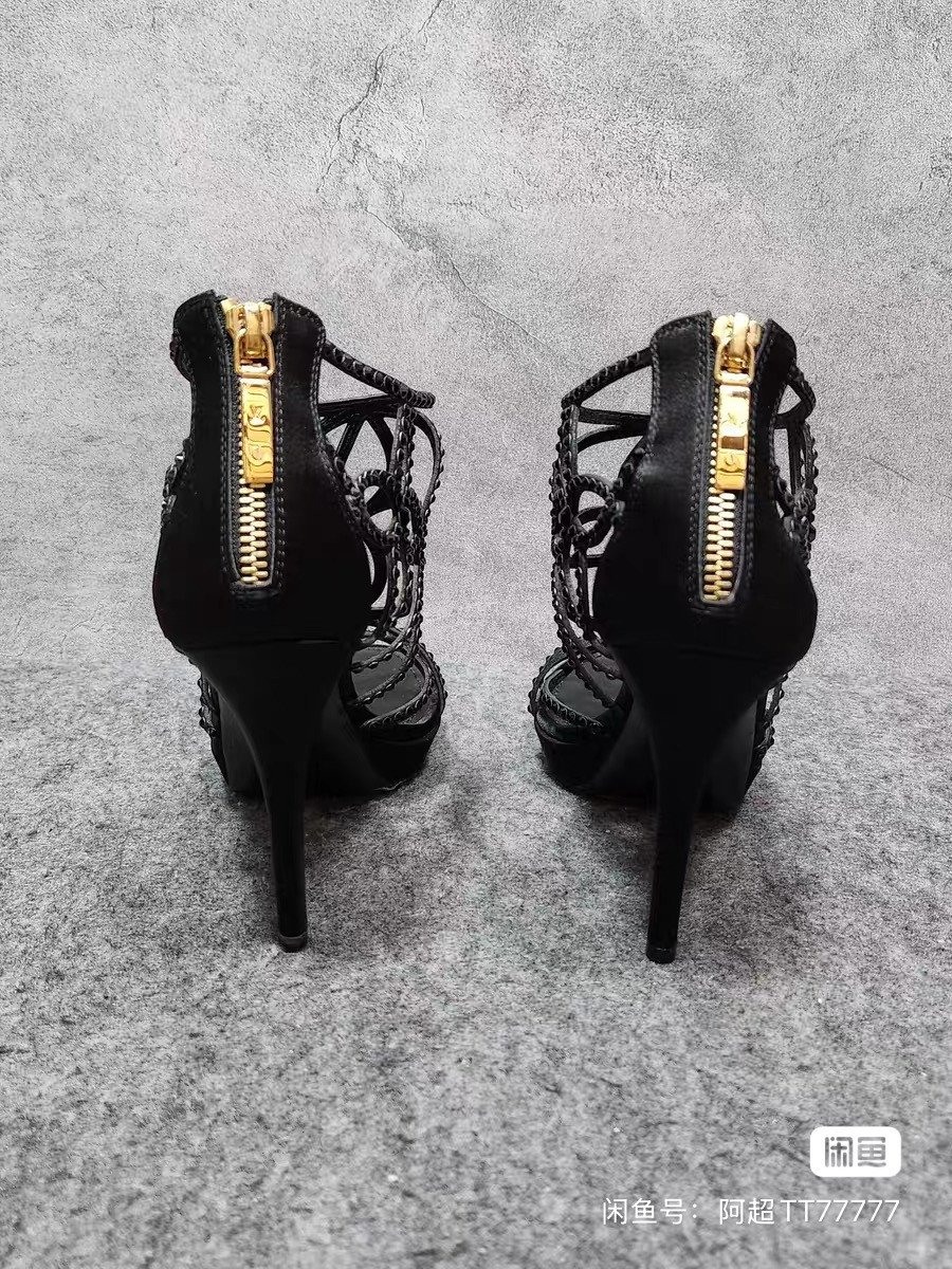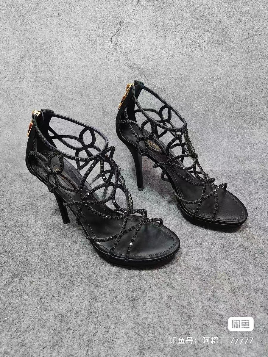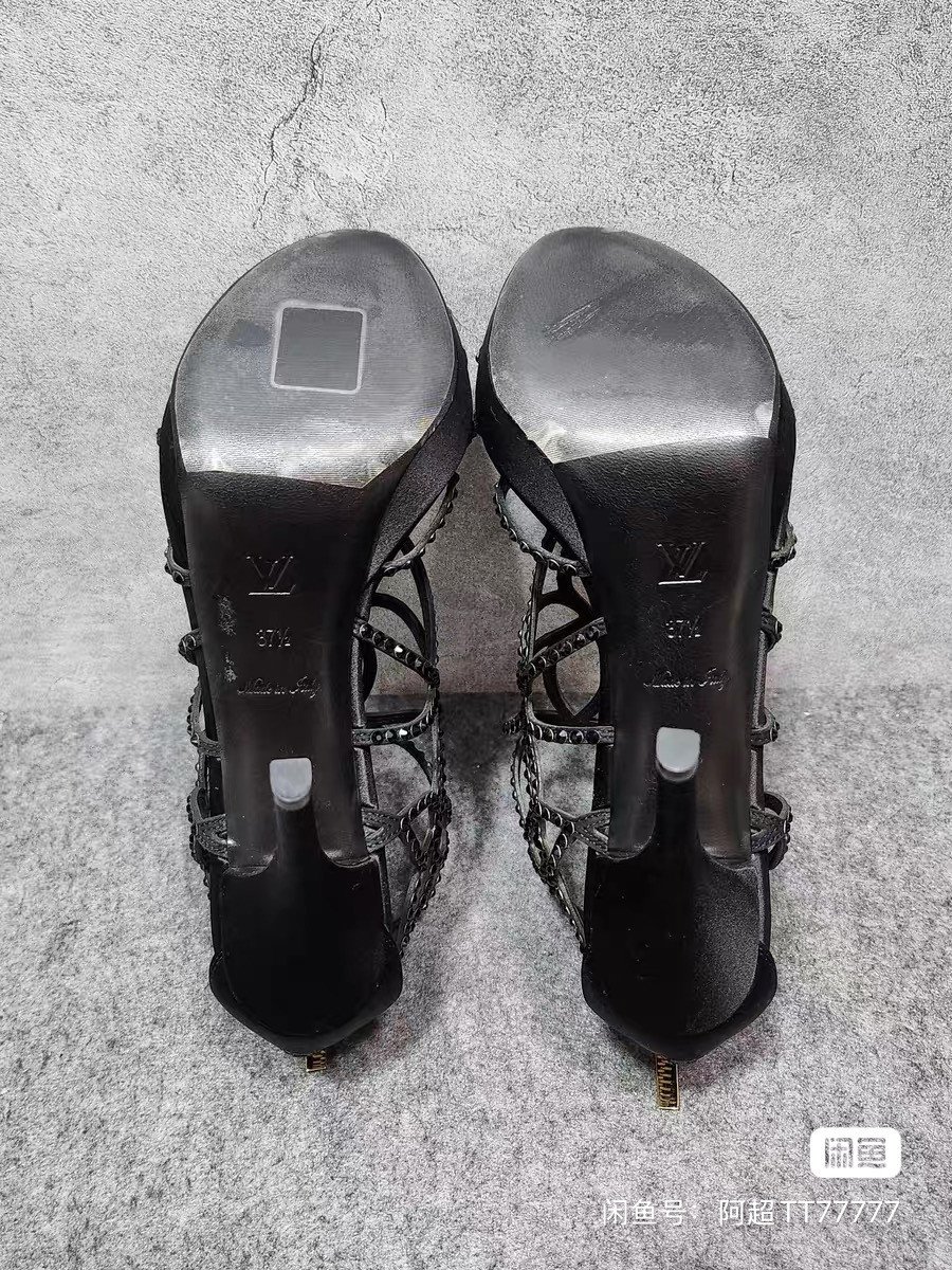 Louis Vuitton Black Hollow Crystal Cross Flower Open Toe Thin Heel Sandals High Heels. Women's shoes size 37.5, with a heel height of 11cm. Brand-new try-on, slight storage marks, no wear on the sole.