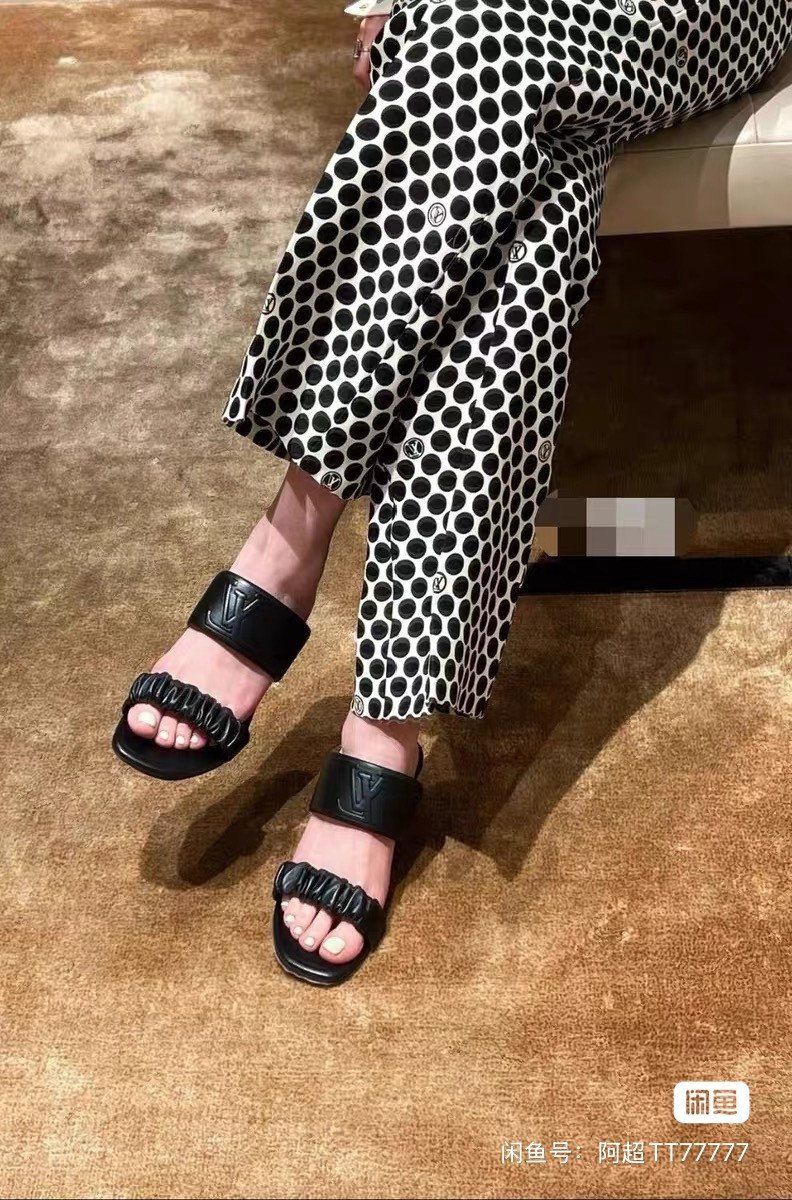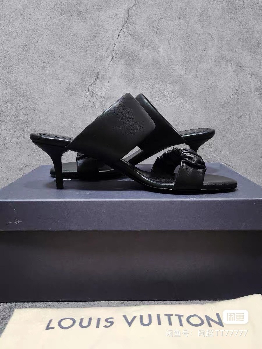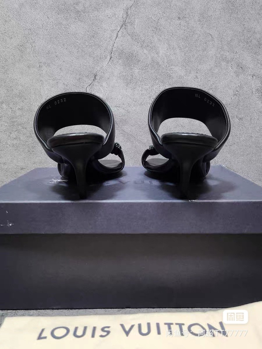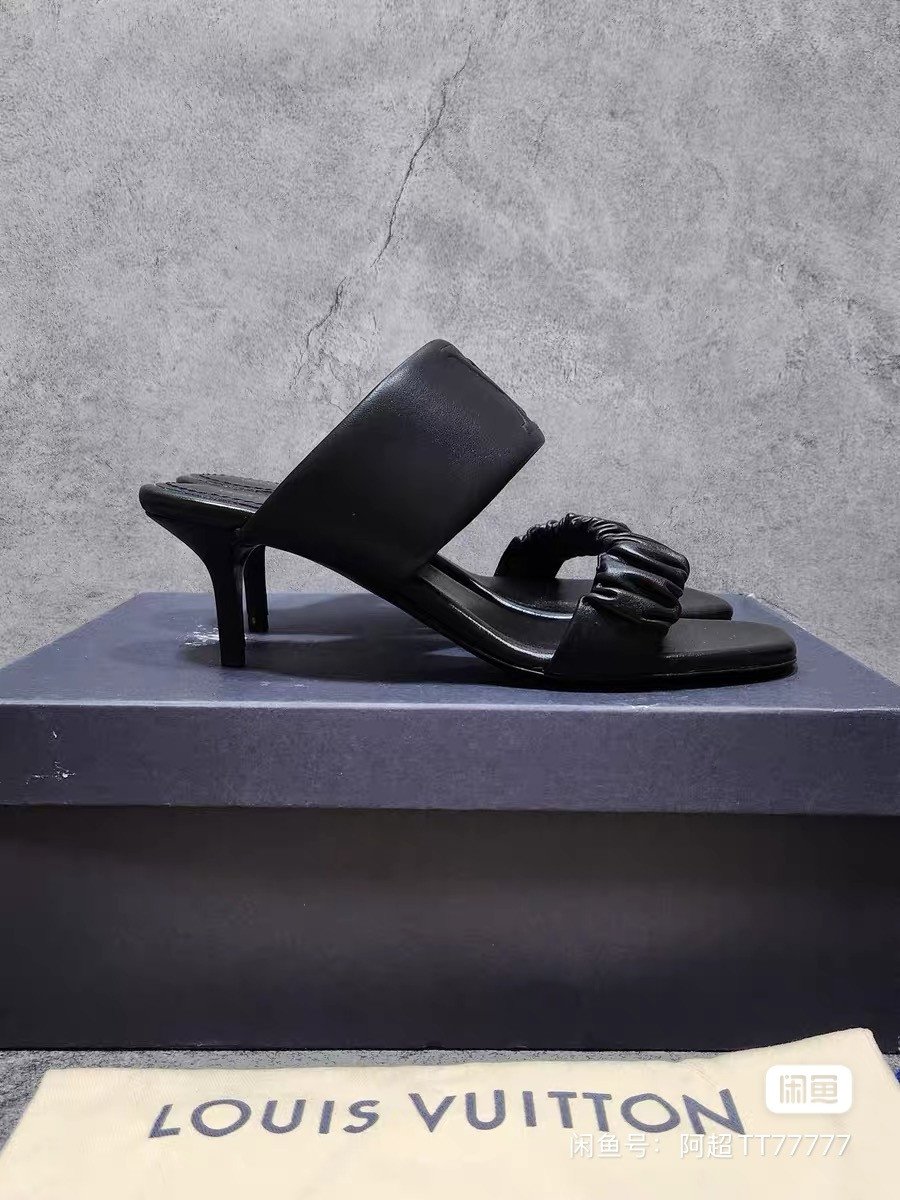 Louis Vuitton Drapy Mule Series Black Foot Fashion Slippers. Women's shoes size 37, with a heel height of 5.5cm. Brand-new try-on color, with slight try-on marks on the sole.