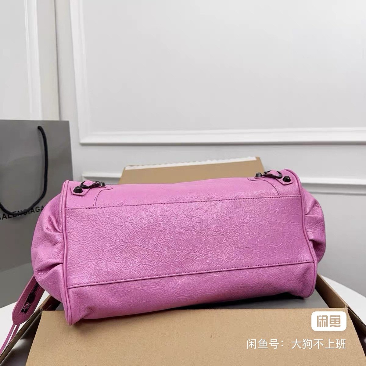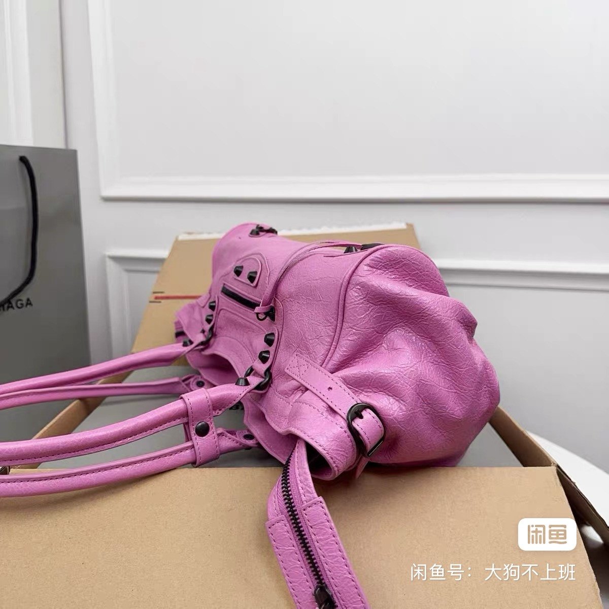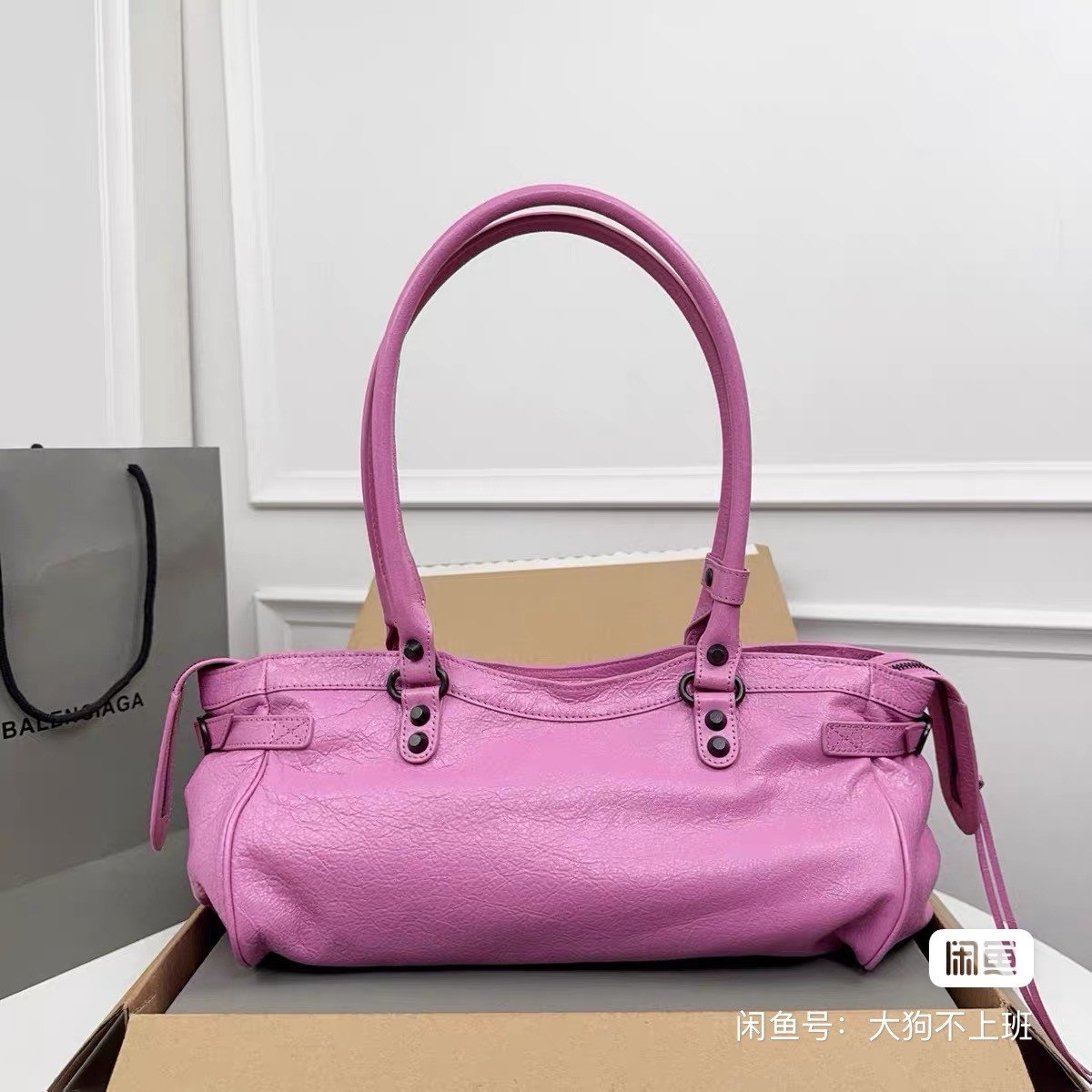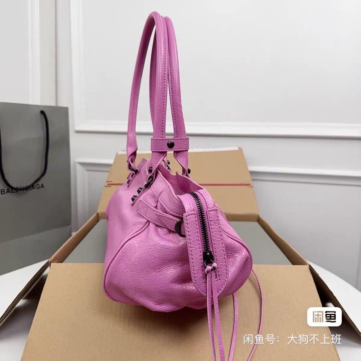 Parisian Le City east-west locomotive bag, rose pink, oil wax leather material, rivet decoration design, double-sided zipper opening is super practical. Size 39.8×17.7×14.9cm, can be carried by hand or shoulder, with dust bag and box.