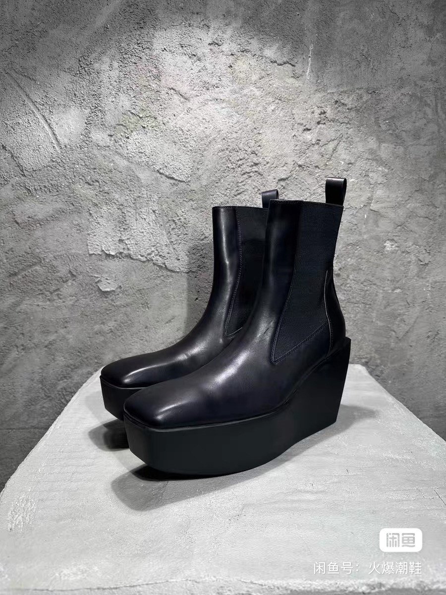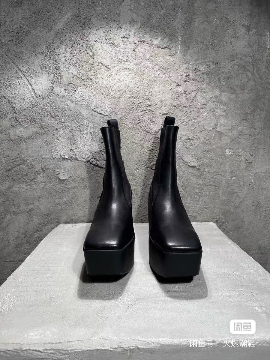 RICK OWENS 2024SS Autumn and Winter New Wide Heel Boots, Open Mold TPU Wear-resistant Sole, First Layer Calfskin Upper, Water-dyed Cowhide Lining, Elastic Band Design, Heel Thickness 12CM, Forem Thickness 6CM, SIZE: 38-46, A Small Number Of Spot Seconds