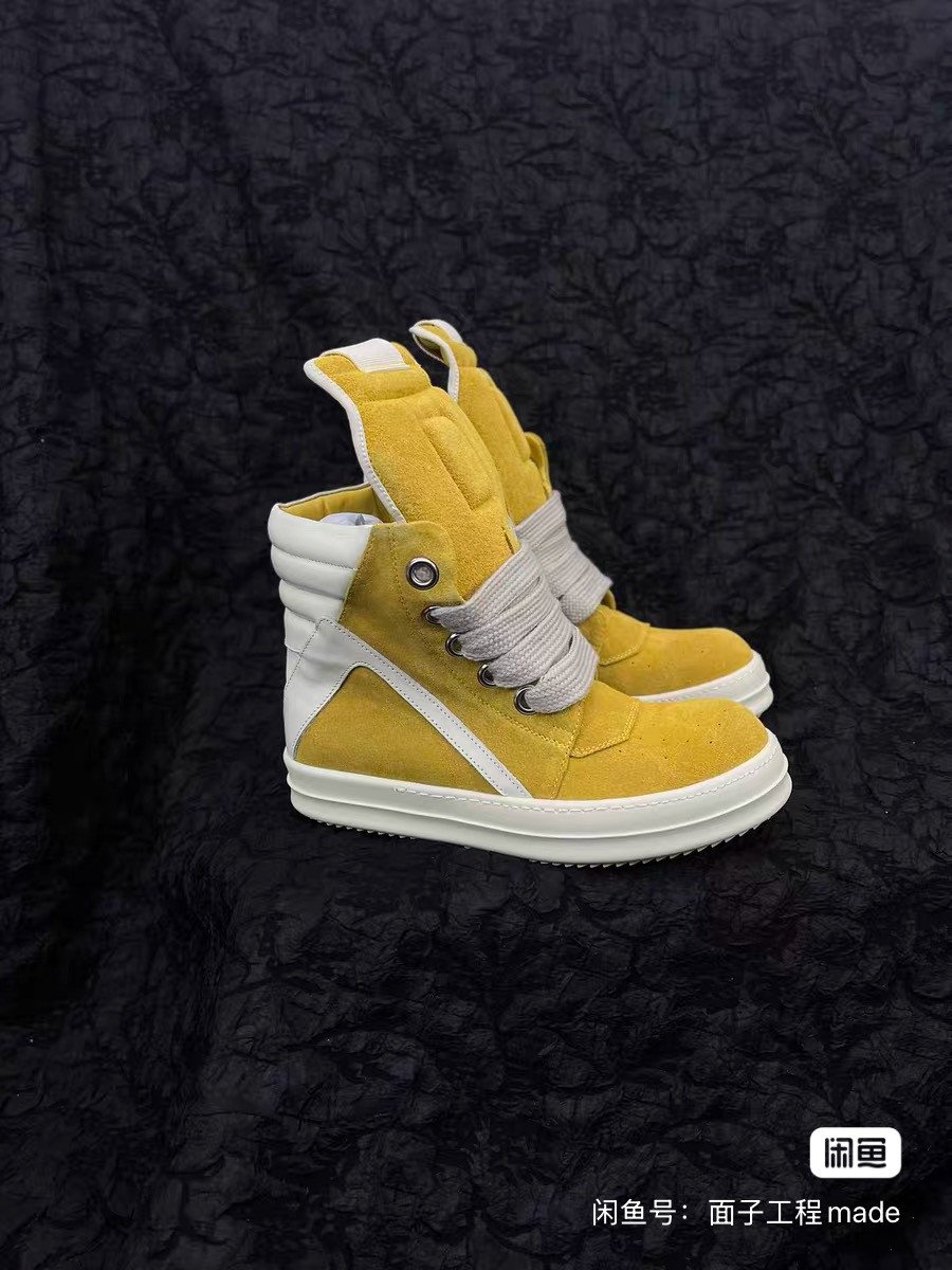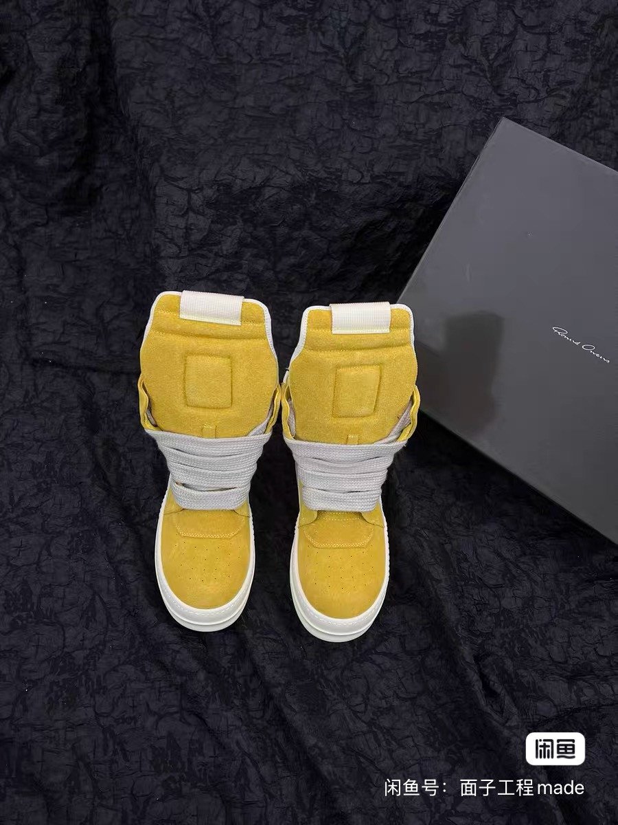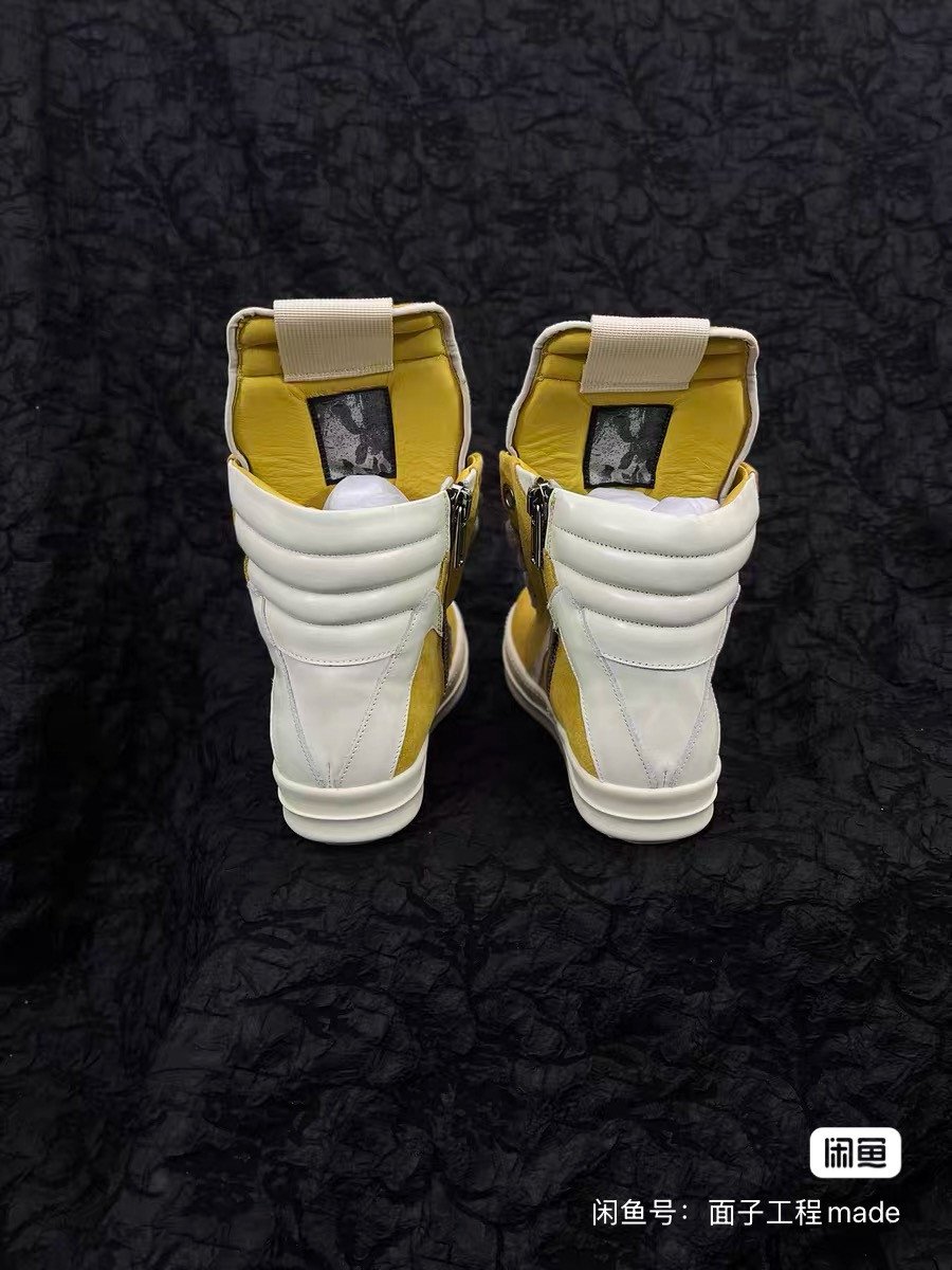 Rick Owens' new high-top shoes, unique milky thick sole design, a must-have for fashion trends! Yellow and white color matching, classic and eye-catching, suitable for all-season wear, suitable for both men and women.