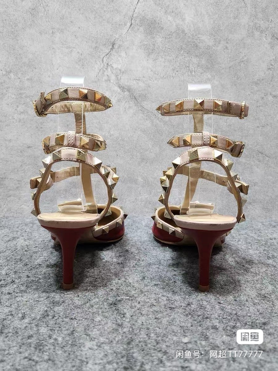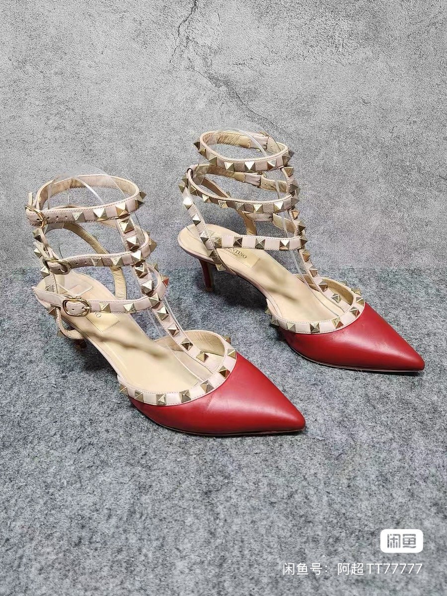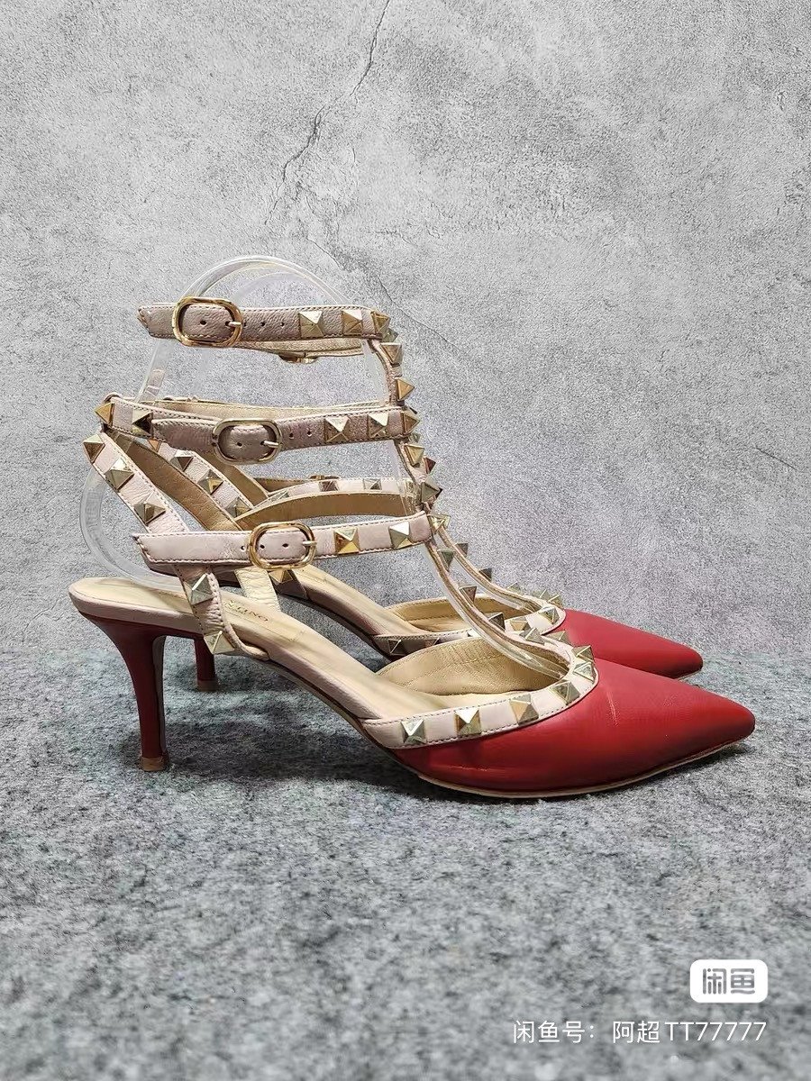 Valentino red simple fashion elegant Roman rivet buckle pointed toe thin heel high heels. Women's shoes are size 36.5, with a heel height of 6cm. The overall color is very good, and I don't wear it many times. Customized 9 new. There are no obvious defects, no damage, and no falling nails on the upper.