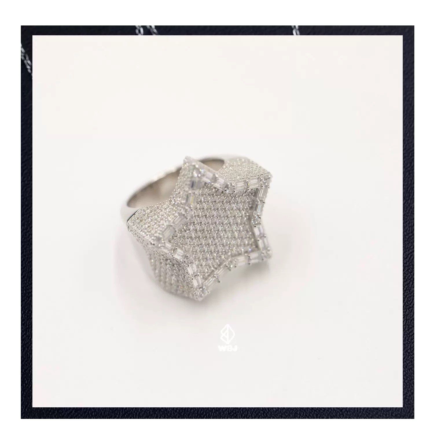 WBJ customized jewelry neon five-pointed star ring T-square five-pointed star 925 silver gold-plated star ring