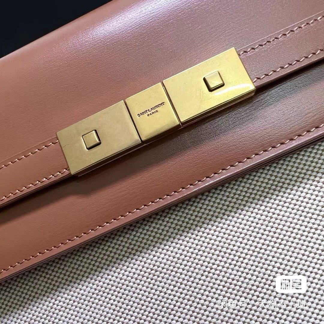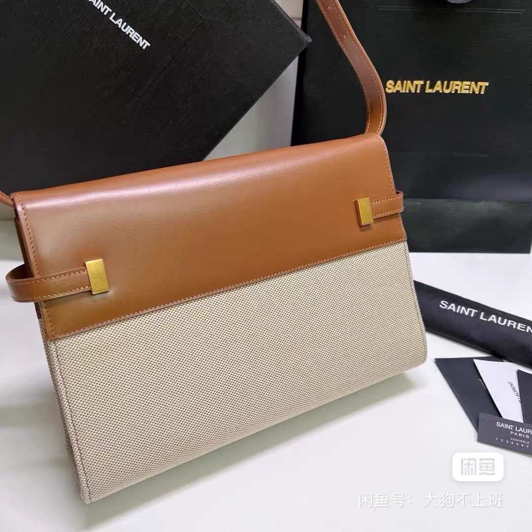 YSL Saint-Roland Manhattan bag, caramel cowhide with beige canvas, classic three-button design, size 29*20cm, with a full set of counter boxes and dustproof bags.