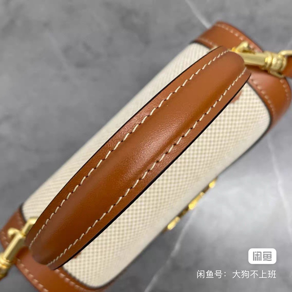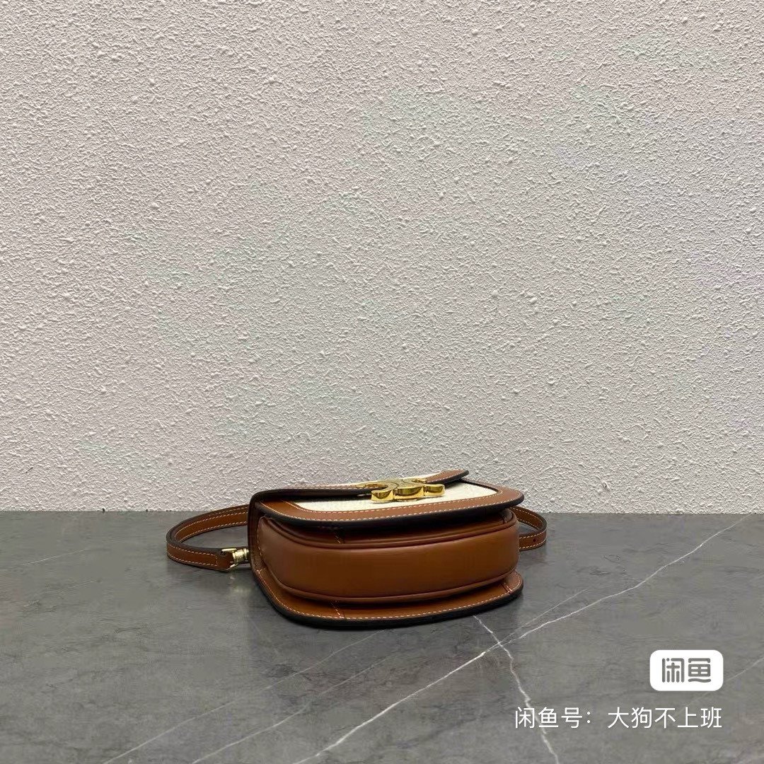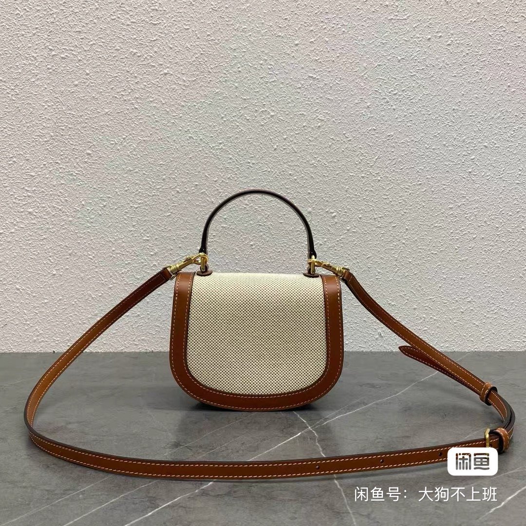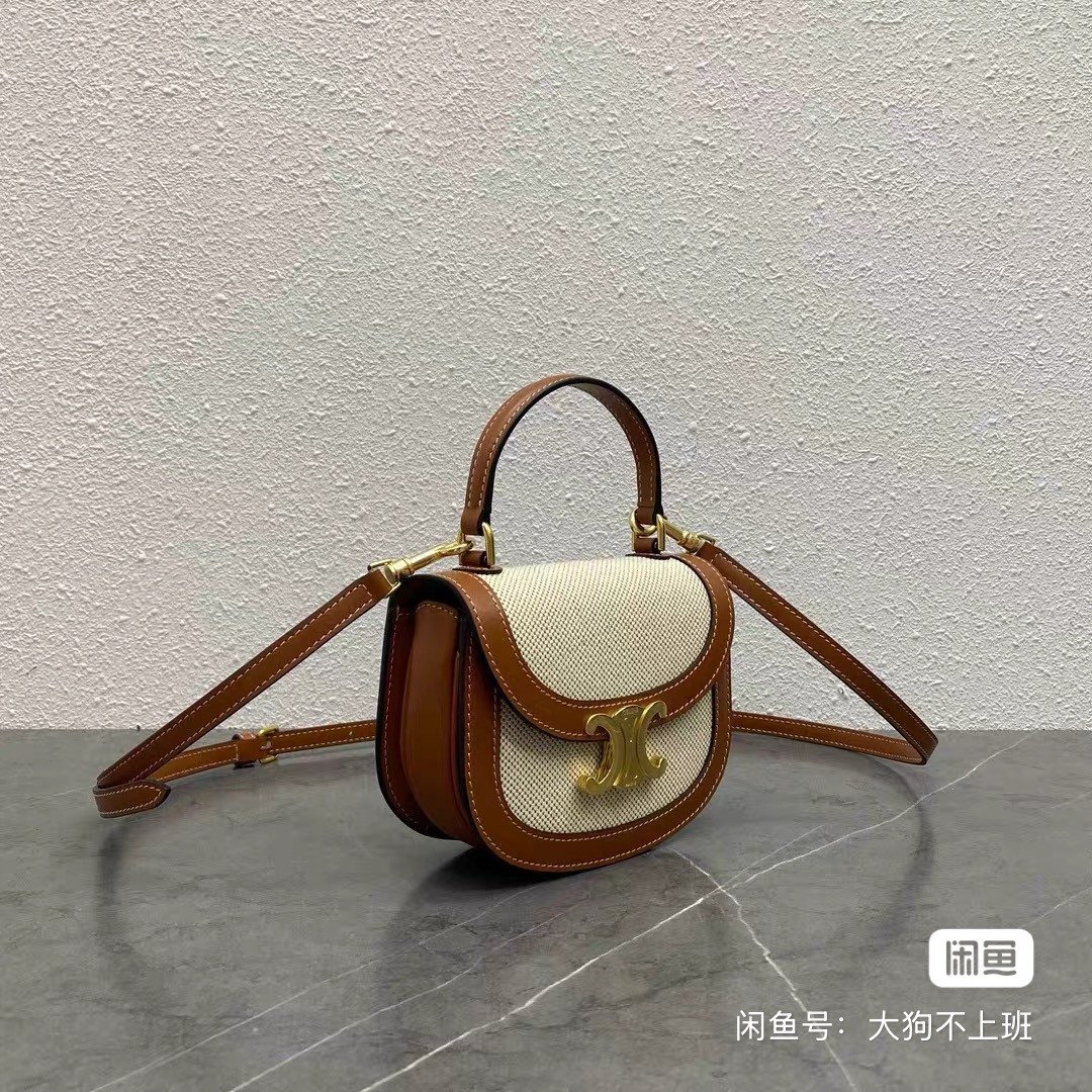 The new Celine mini saddle bag, classic Arc de Triomphe design, brown and white canvas, retro and fashionable. The size is 15.5x11.5x5cm, which can be slanted on the back, shoulder or carried by hand, and can be matched with sharp weapons on a daily basis.