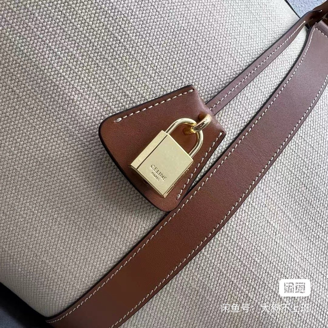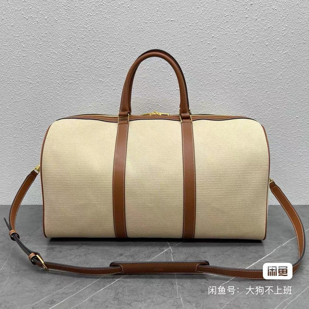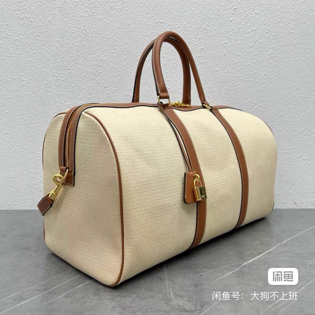 CELINE's new travel bag, linen with brown leather, super large capacity, a must-have for travel. The decorative gold lock is full of design sense, light and durable.
