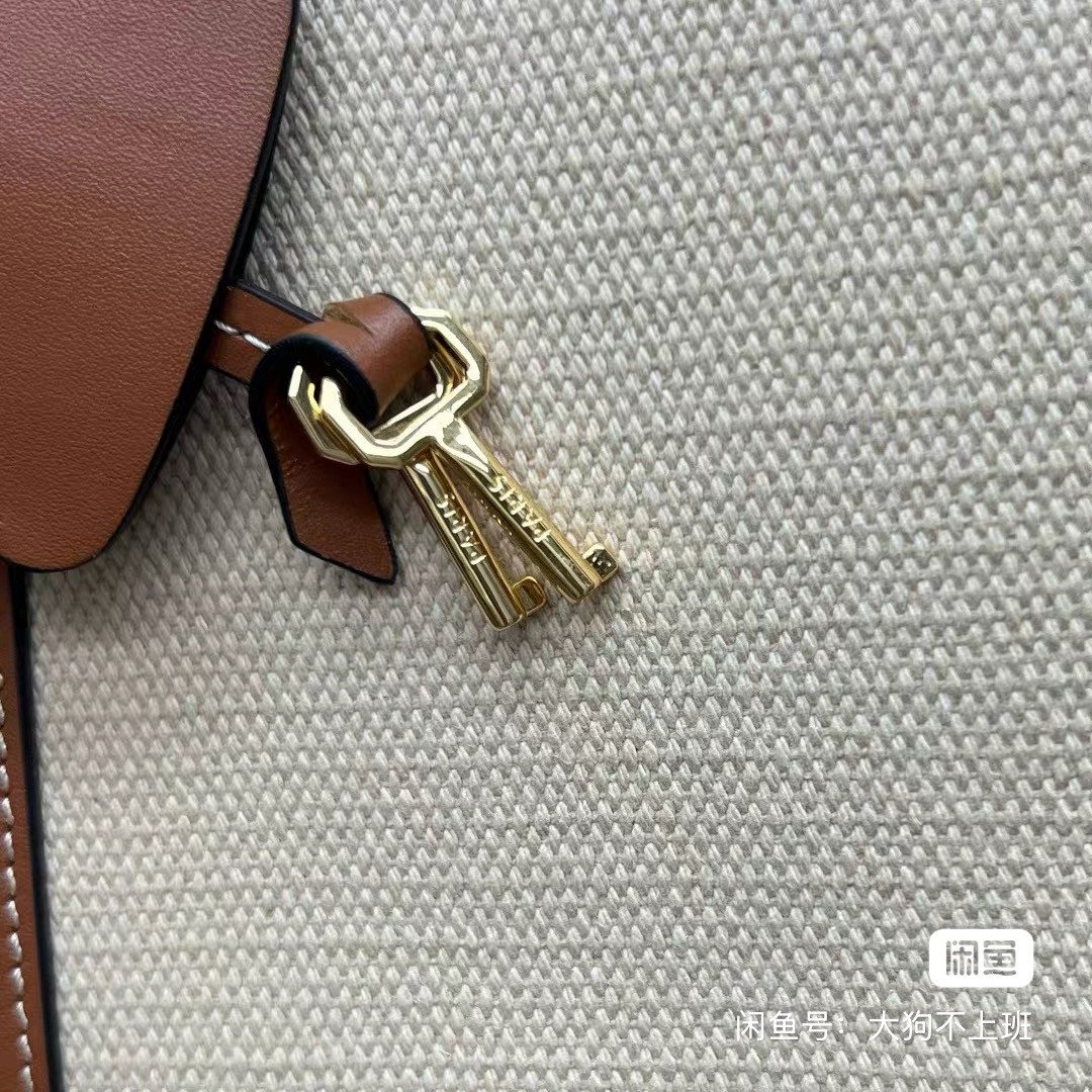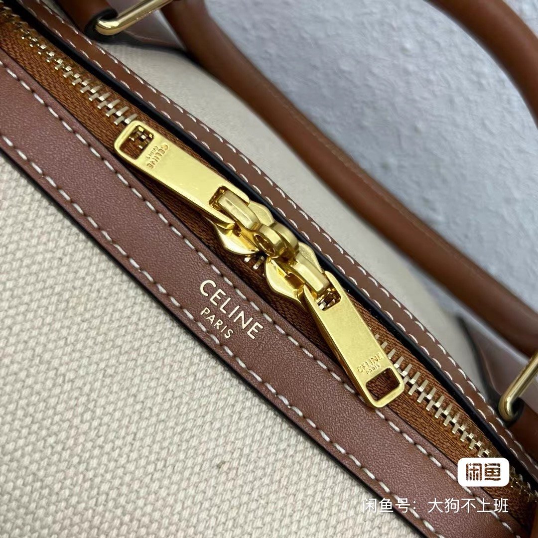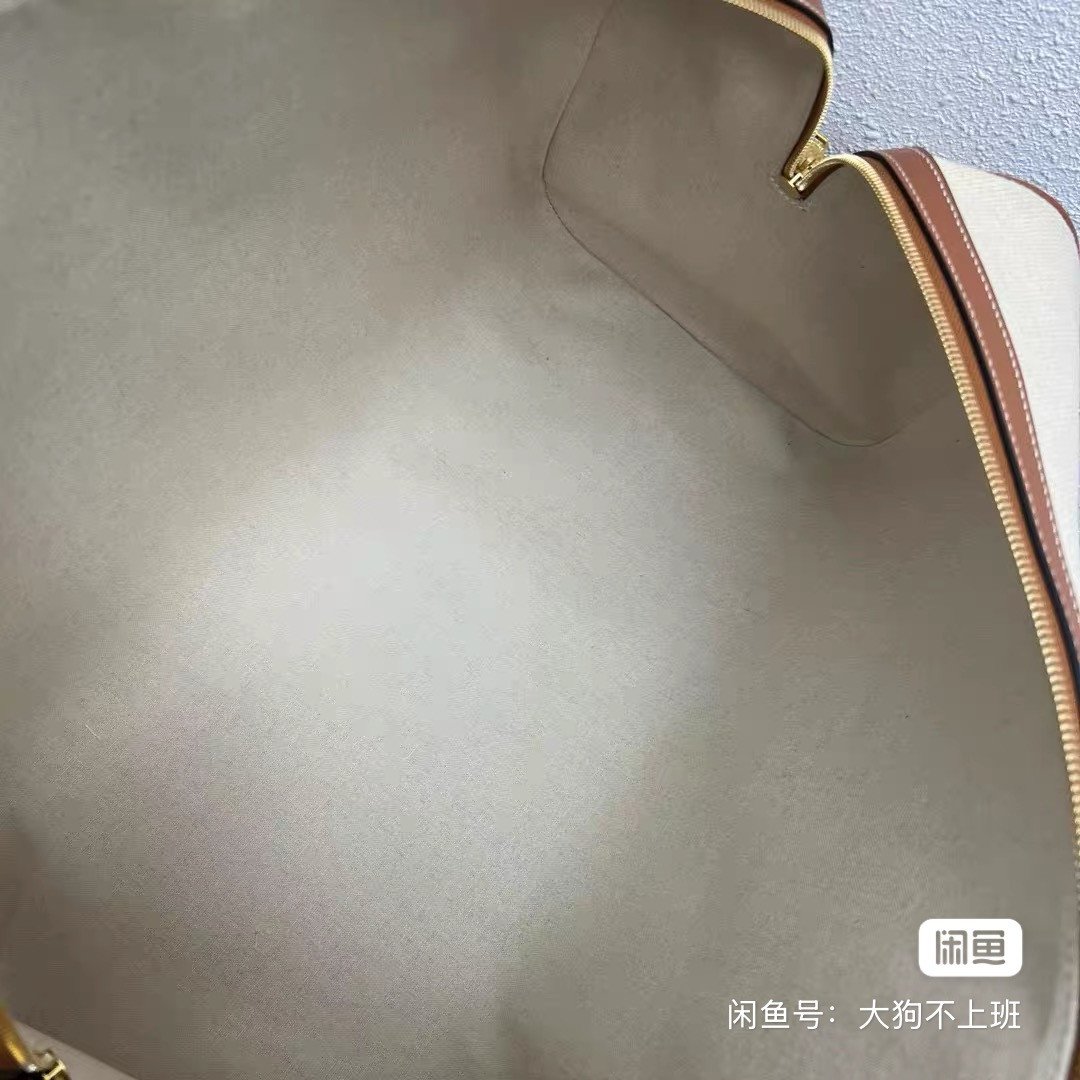 CELINE's new travel bag, linen with brown leather, super large capacity, a must-have for travel. The decorative gold lock is full of design sense, light and durable.