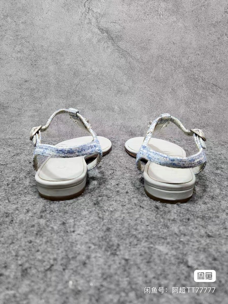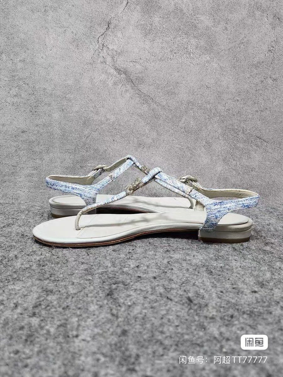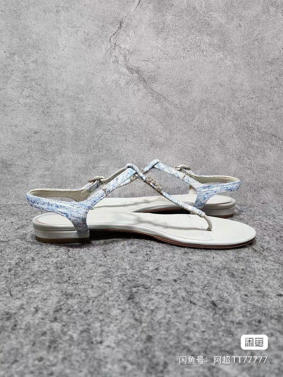 Chanel blue fabric logo comfortable and versatile flat-toe buckle sandals. Women's shoes size 36.5. The overall color can also be customized for 85 new.