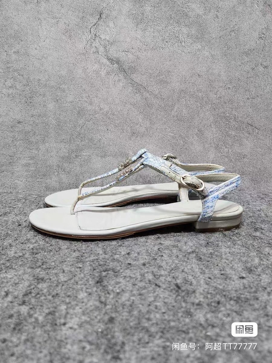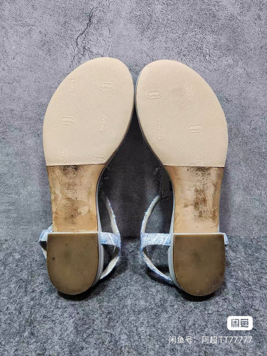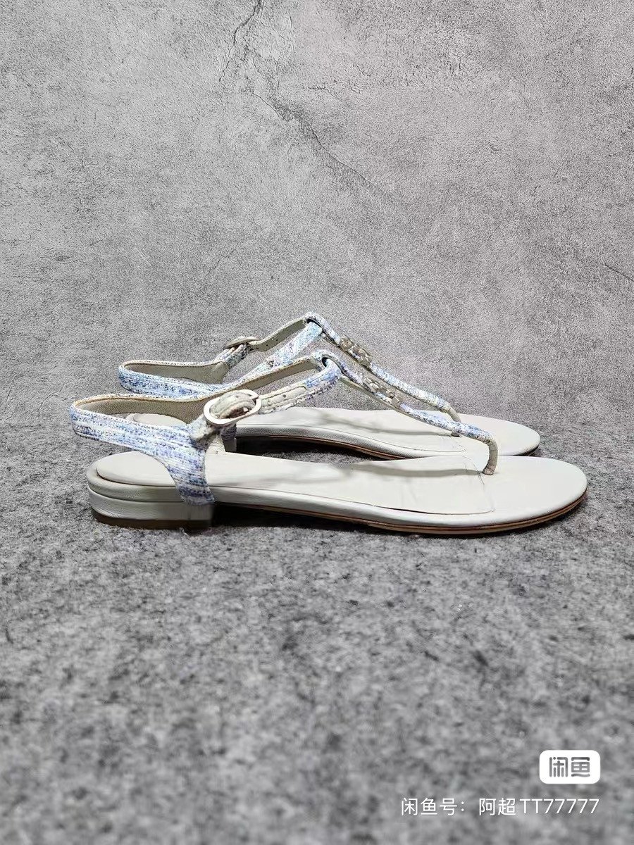 Chanel blue fabric logo comfortable and versatile flat-toe buckle sandals. Women's shoes size 36.5. The overall color can also be customized for 85 new.