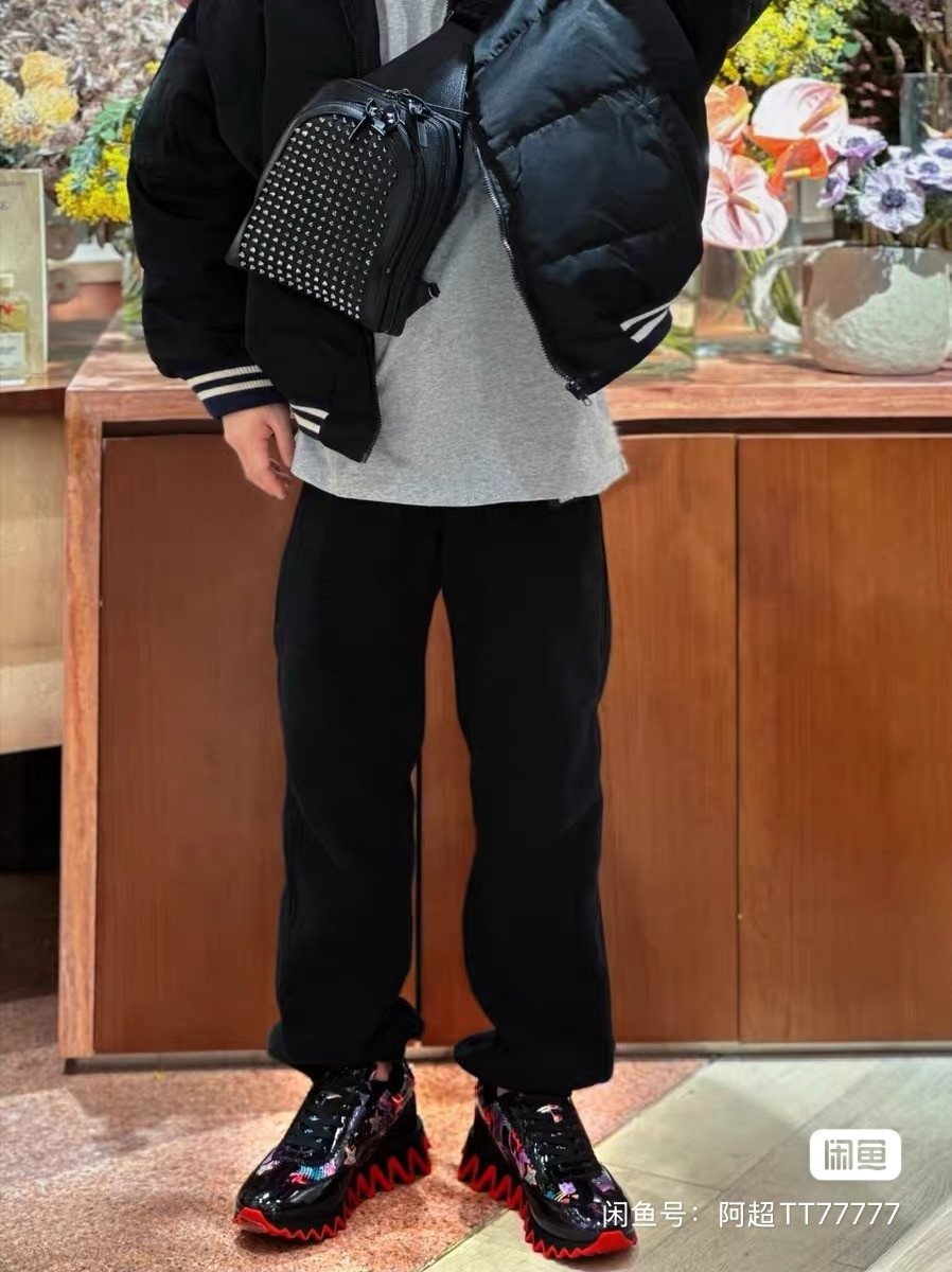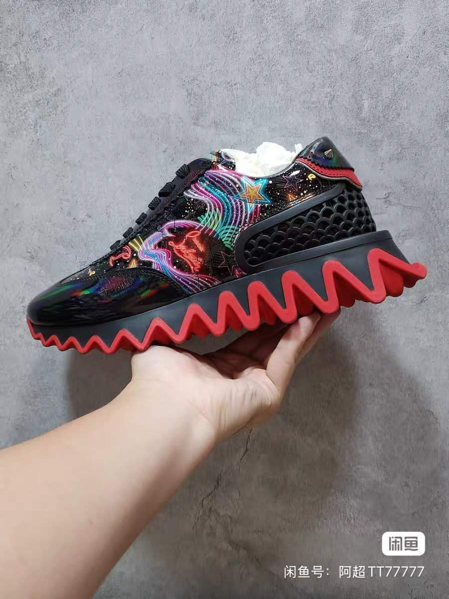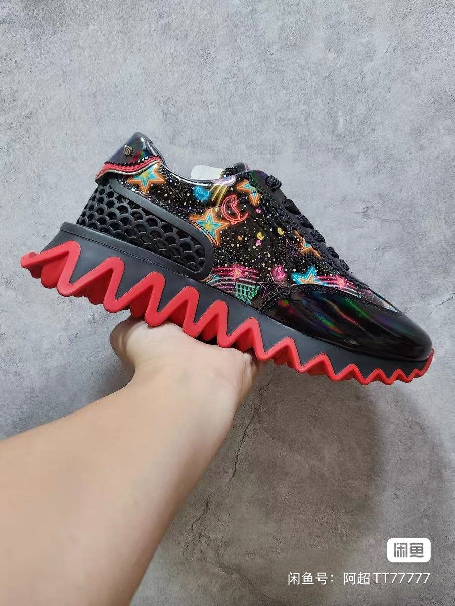 Christian Louboutin CL black patent leather colorful starry sky print low-top shark sole casual sneakers red sole shoes. Men's shoes size 39.5, insole length 261. Brand new and unworn. A large complete set can be given away.