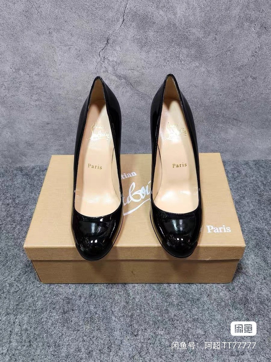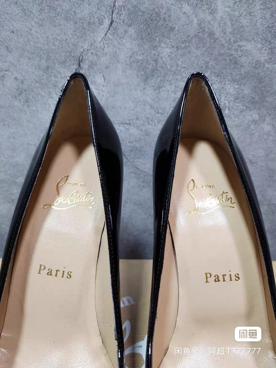 Christian louboutin CL black patent leather round toe shallow thin heel red sole shoes. Women's shoes size 36, with a heel height of 10cm. Brand-new try-on, slight storage marks on the sole.