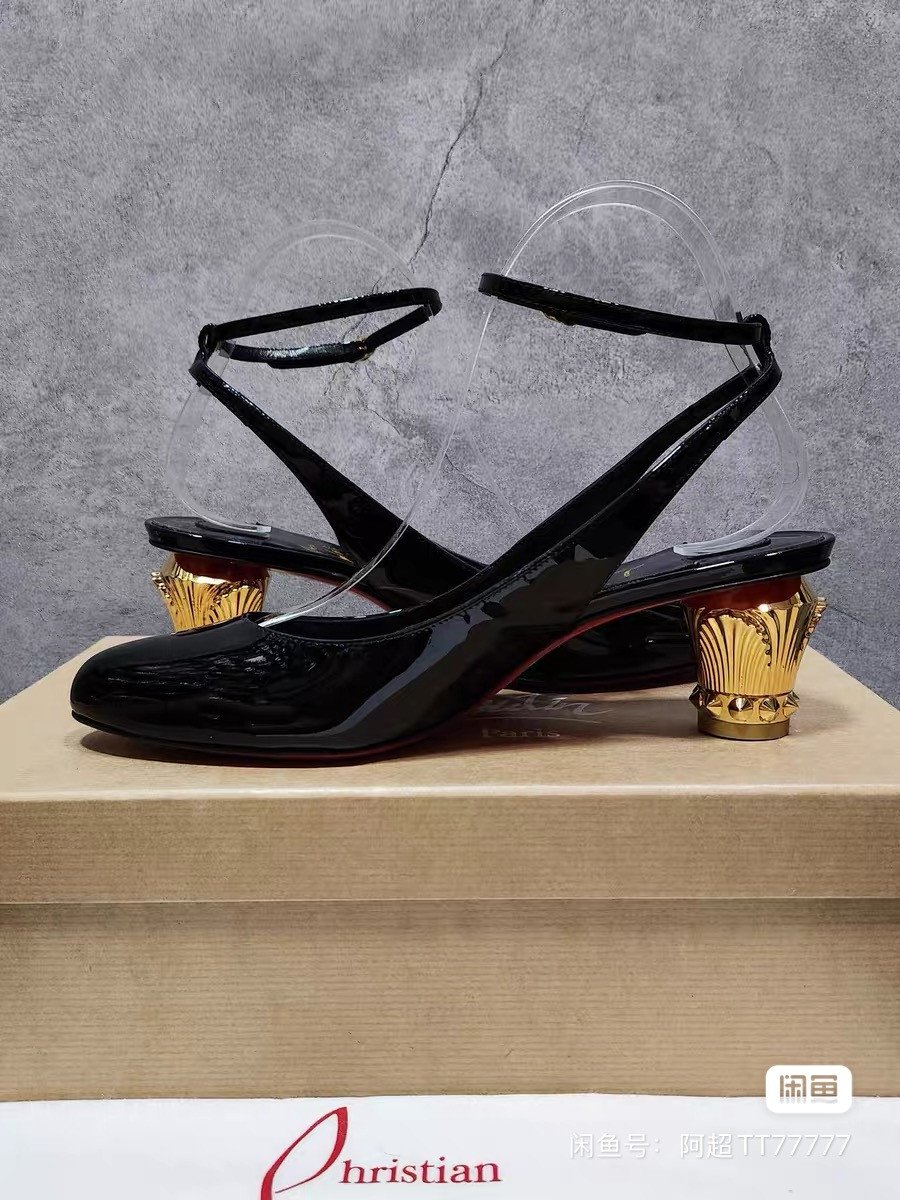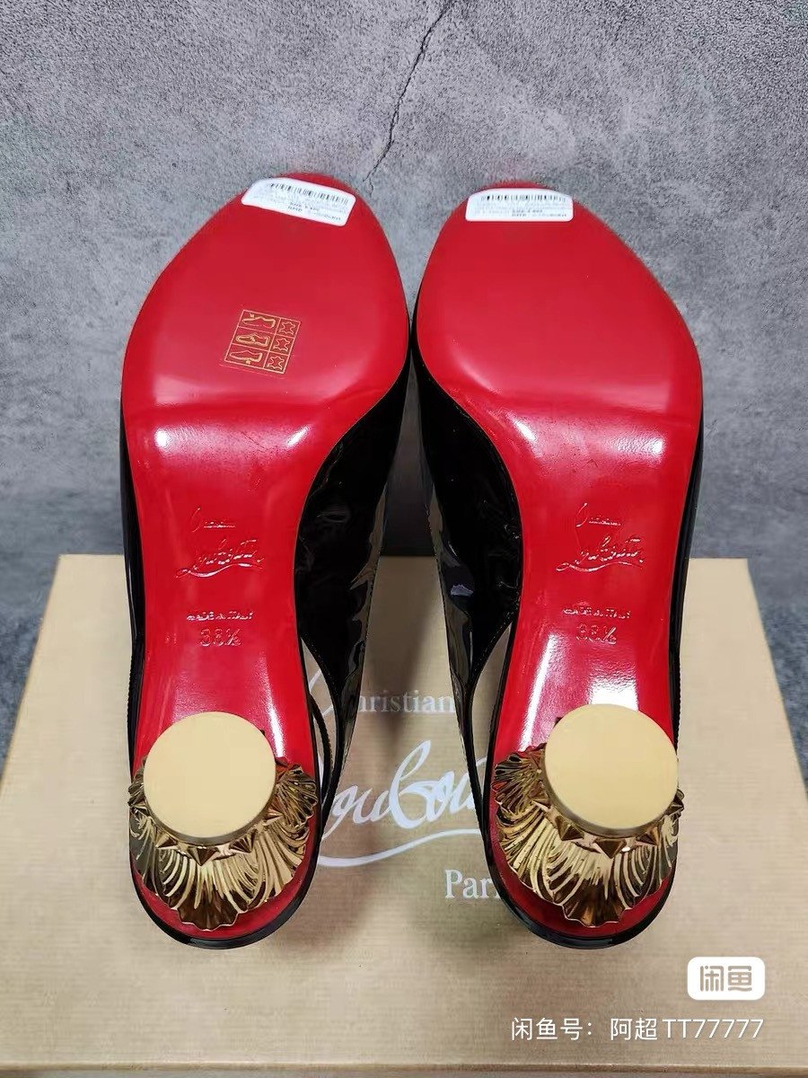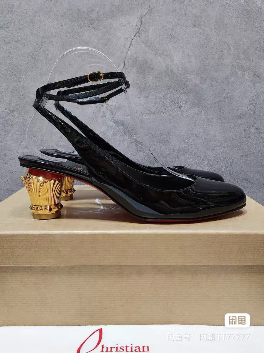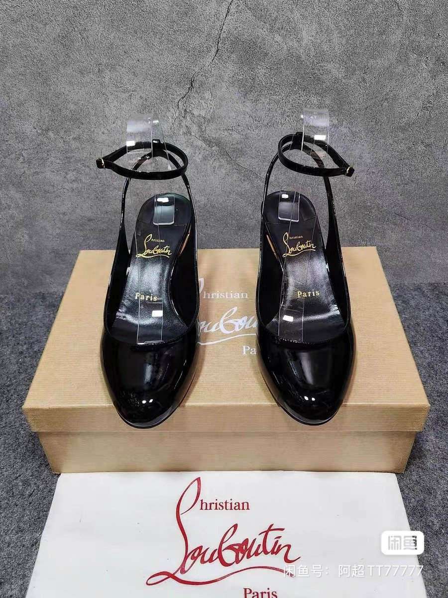 Christian louboutin CL black shiny pointed toe buckle shaped heel high heels. Women's shoes are size 38.5, and the heel height is 55mm. Brand new and unworn, a large set can be given as a gift.