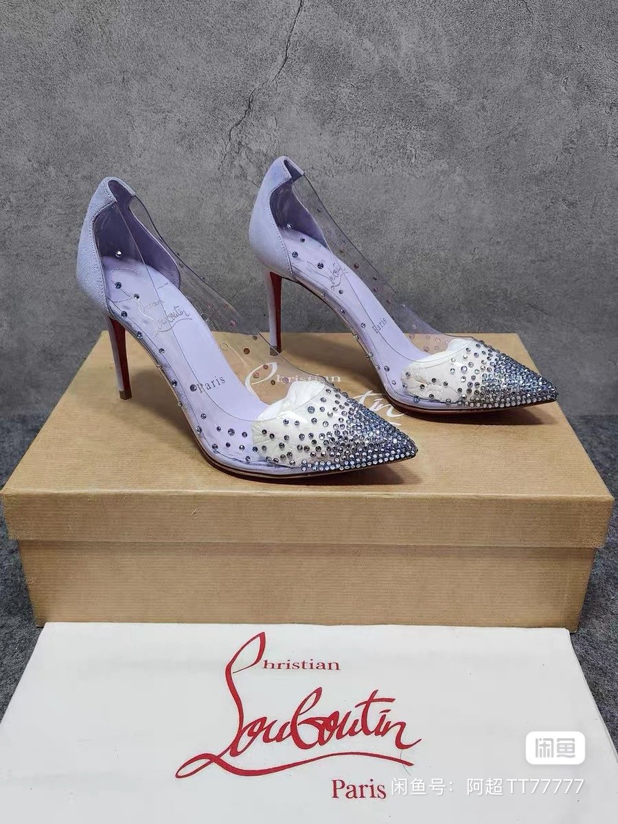 Christian louboutin CL lilac purple suede pointed toe PVC crystal full diamond thin heel high heels wedding shoes red sole shoes. Women's shoes size 34.5, with a heel height of 85mm. Brand new and unworn, a full set can be given away.
