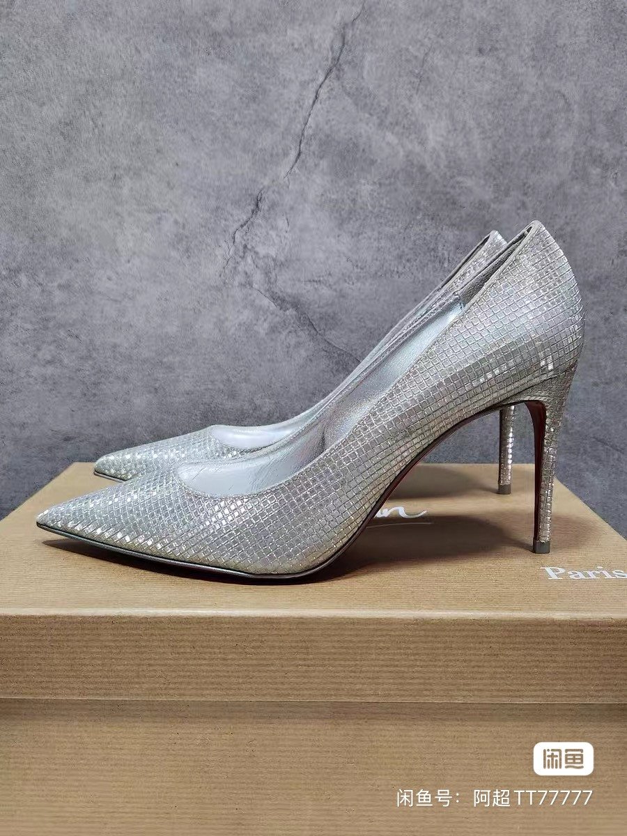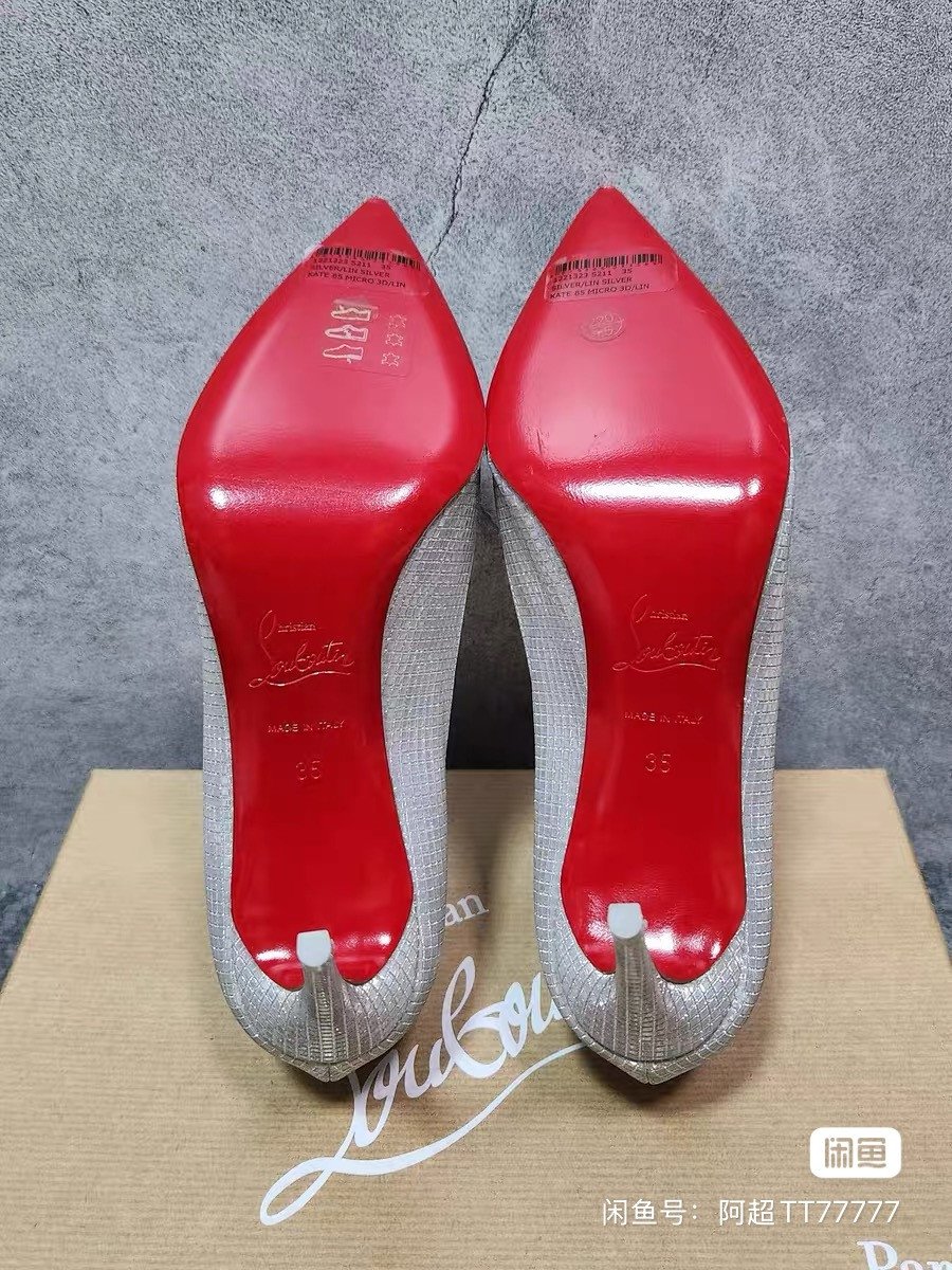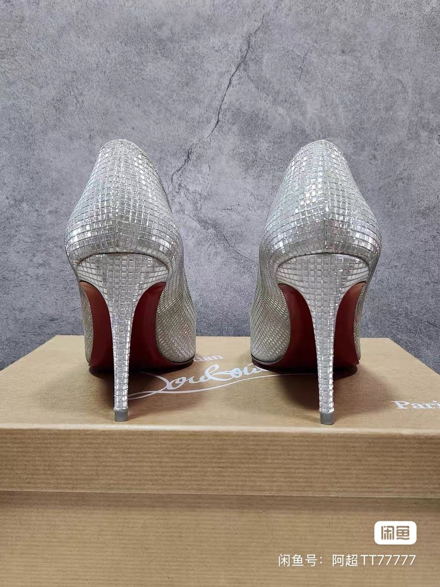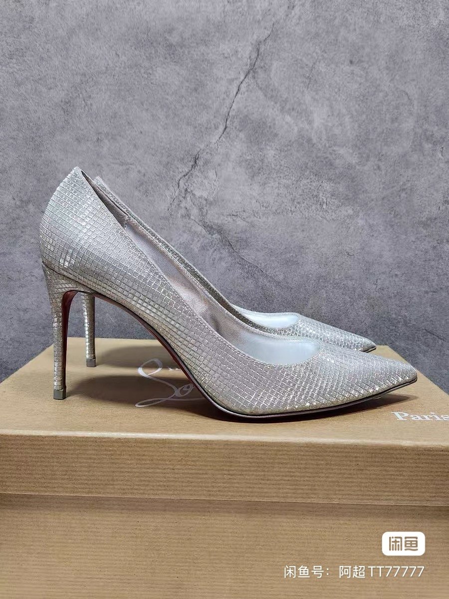 Christian louboutin Kate series CL silver plaid fabric pointed toe thin heel high-heeled shoes red sole shoes. Women's shoes size 35, heel height 85mm. Brand new and unworn, a large set can be given as a gift. The original price of the counter, with the original shoe box and dustproof bag. Authenticity is guaranteed. Second-hand goods are not brand-new. Perfectionists should not disturb. If it is sent by Express, please accept it in person and support any identification. After the luxury second-hand items are signed, the rest of the problems will not be returned or exchanged except for the authenticity.