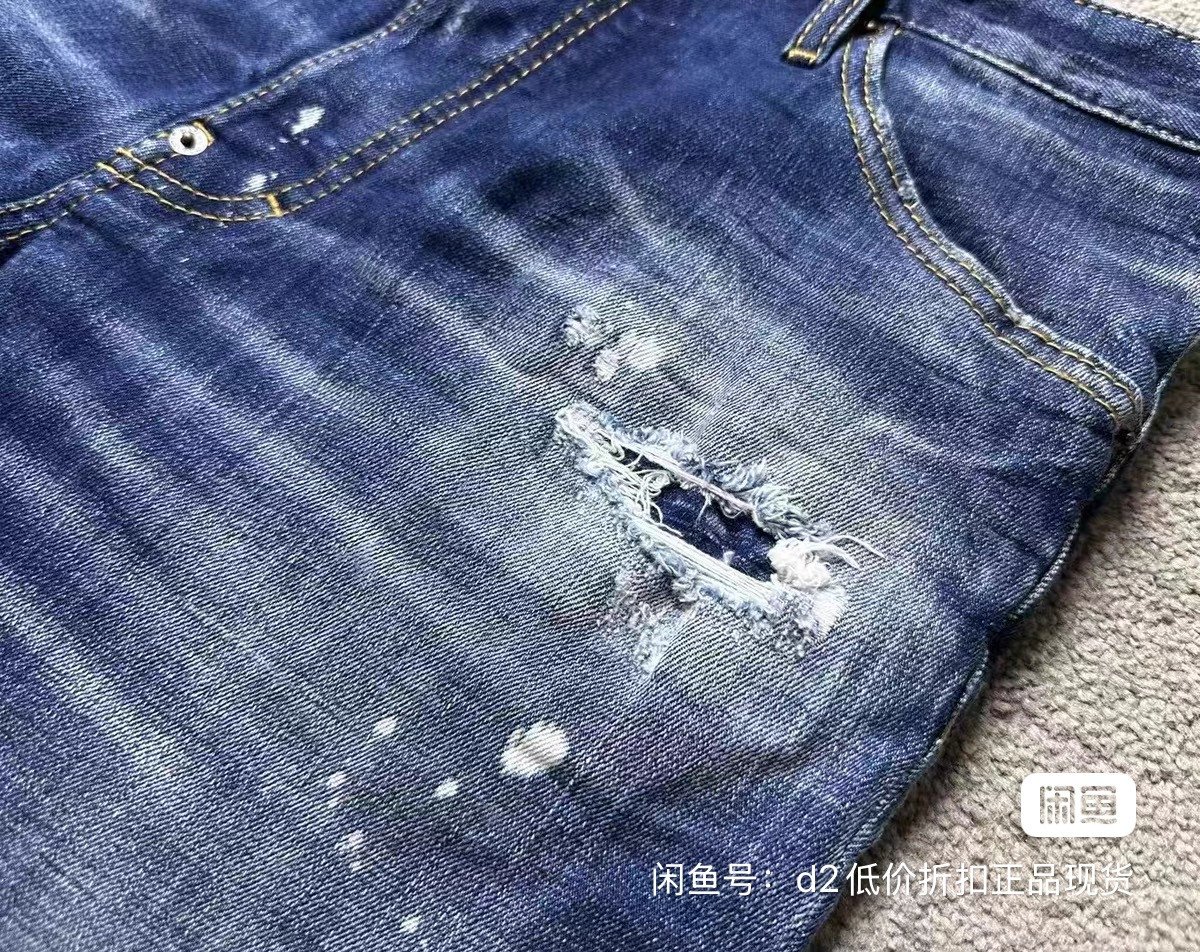DSQUARED2 jeans, made in Italy, fashionable style. There is also a small amount of elastic fiber. The detailed design is unique, with white spray paint and gold embroidered logo, full of personality. Brand new and unworn, no obvious wear. Transfer in good faith. Support inspection, no refund or exchange..