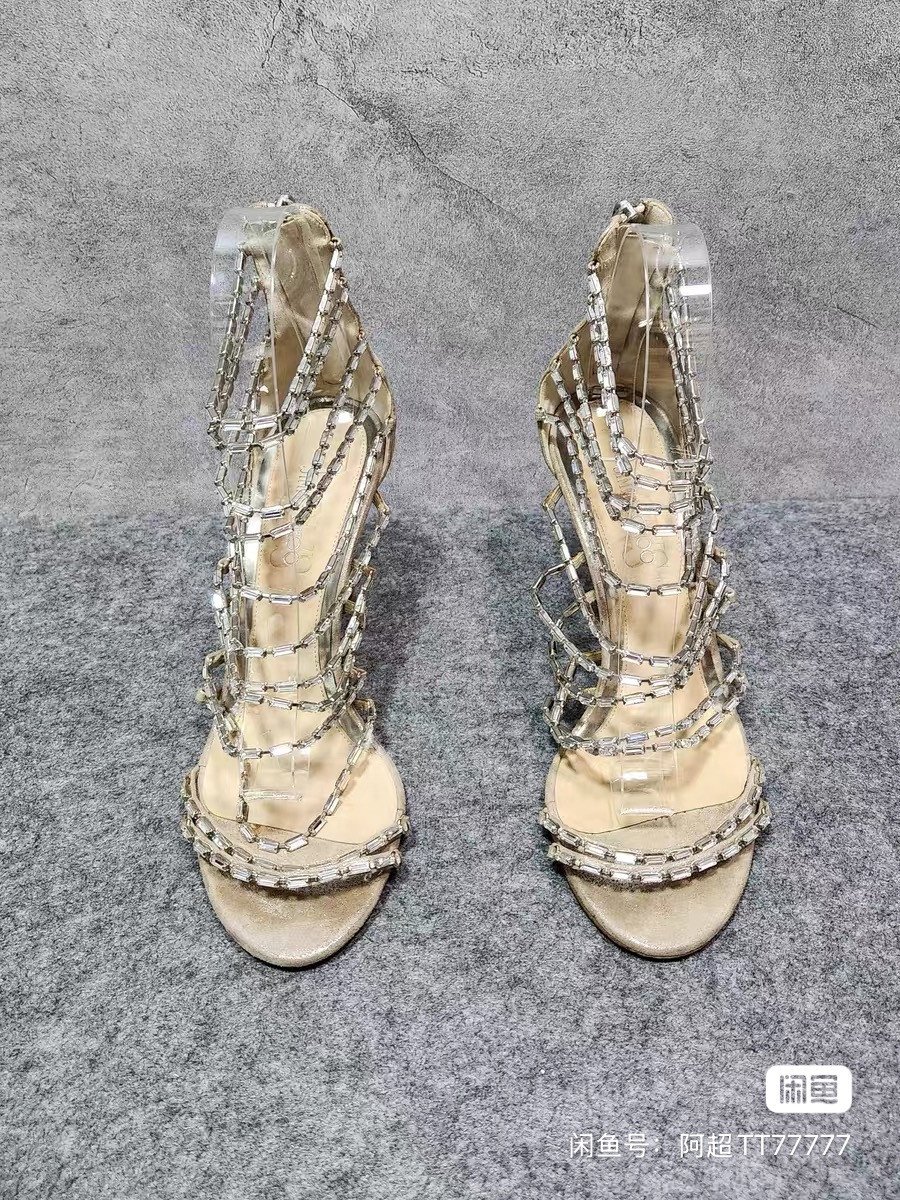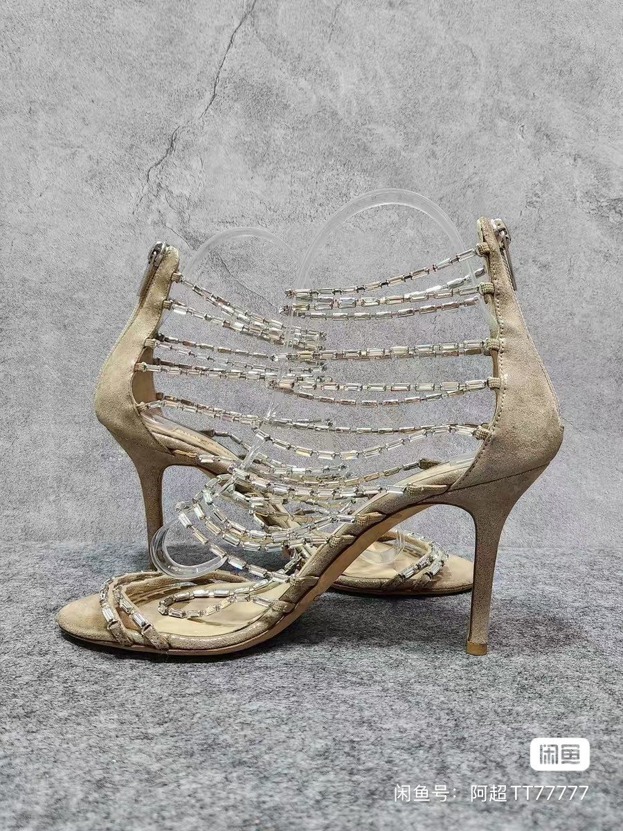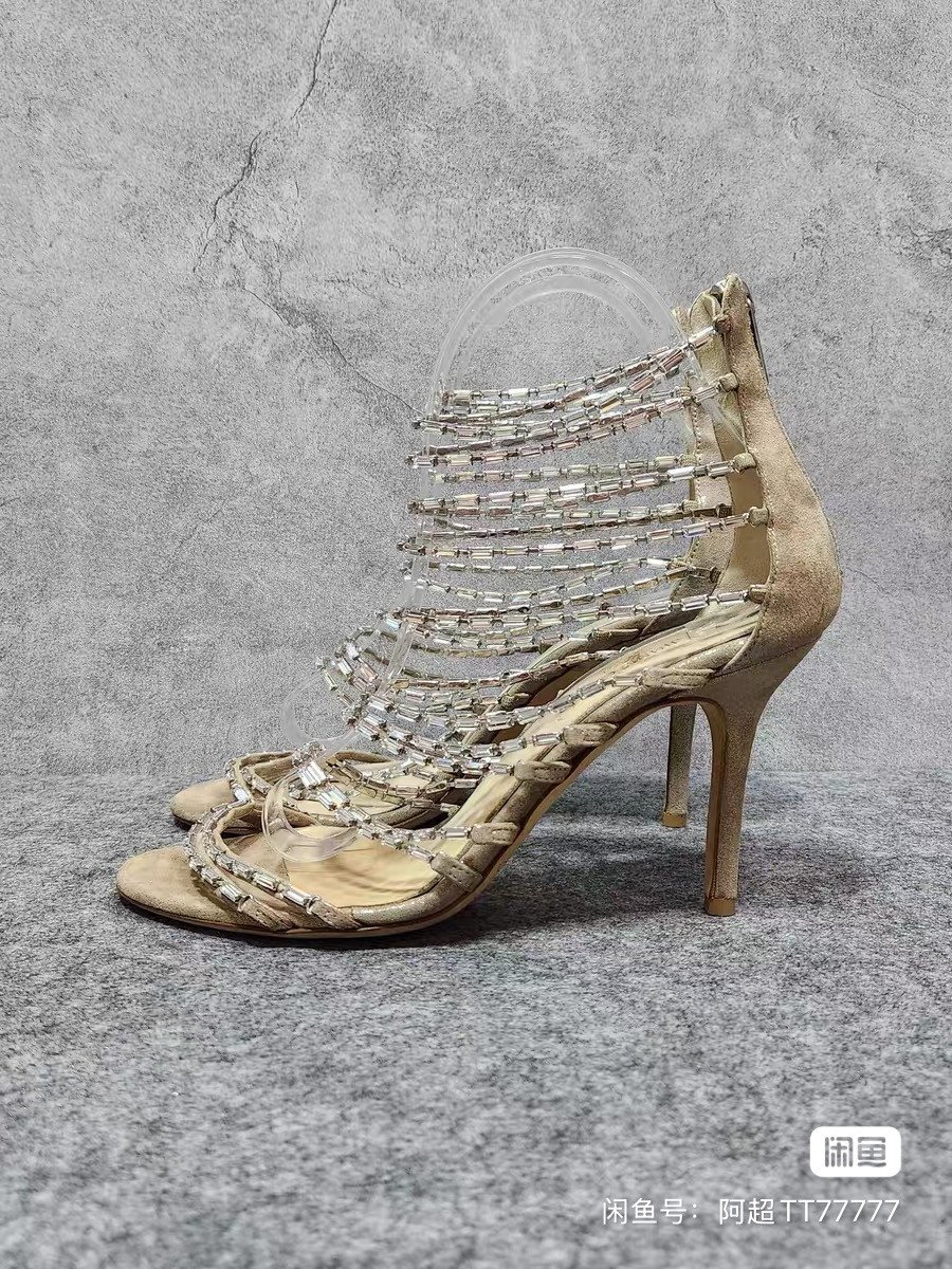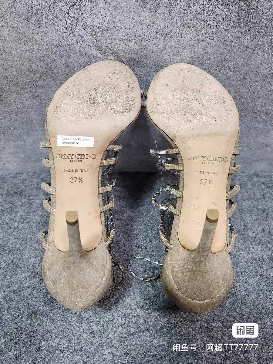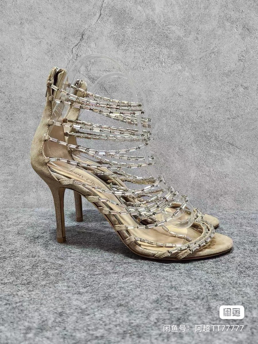 JIMMY CHOO Zhou Yangjie beige open toe crystal decoration back zipper thin heel high heels. Women's shoes size 37.5, heel height 8.5cm. The overall color is good, and I haven't worn it many times. It's customized 95 new.