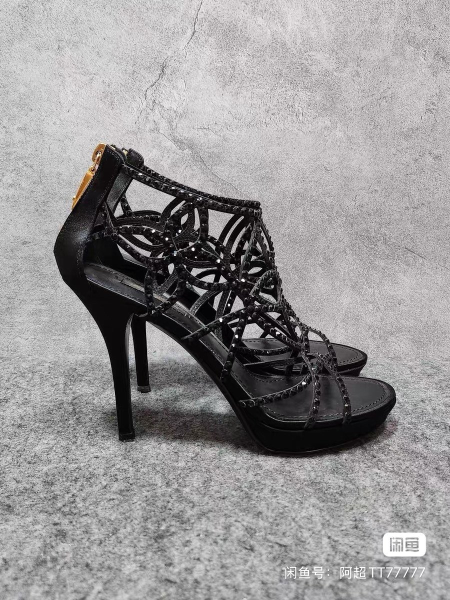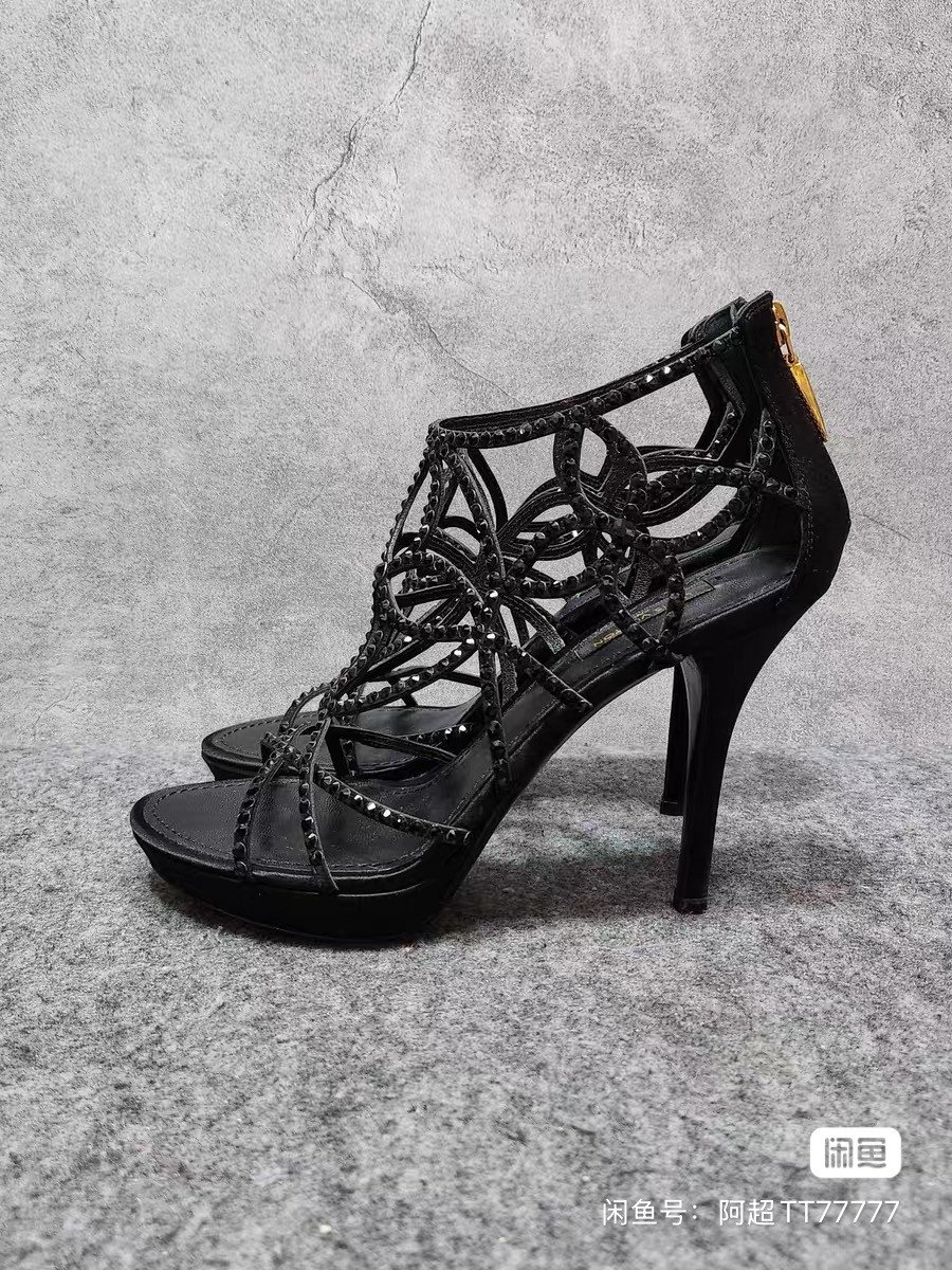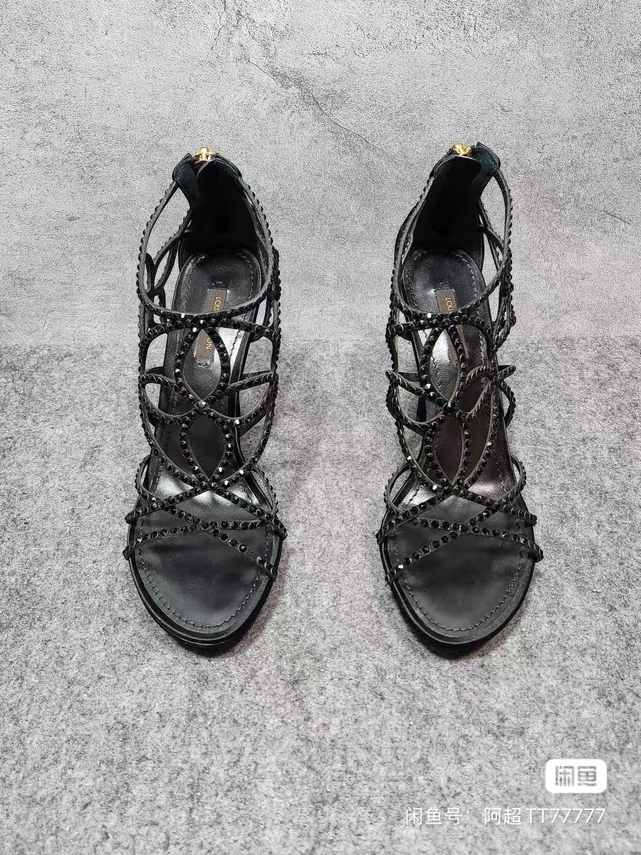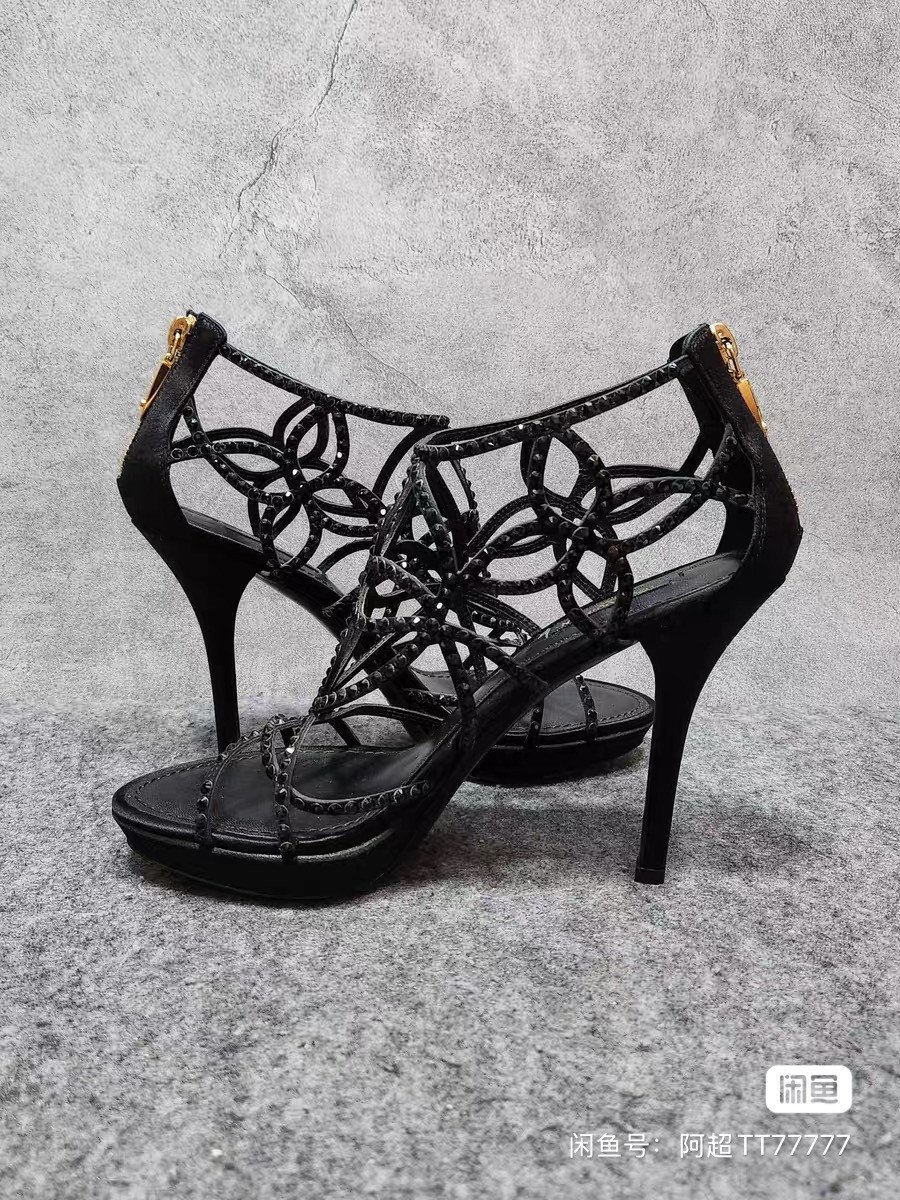 Louis Vuitton Black Hollow Crystal Cross Flower Open Toe Thin Heel Sandals High Heels. Women's shoes size 37.5, with a heel height of 11cm. Brand-new try-on, slight storage marks, no wear on the sole.