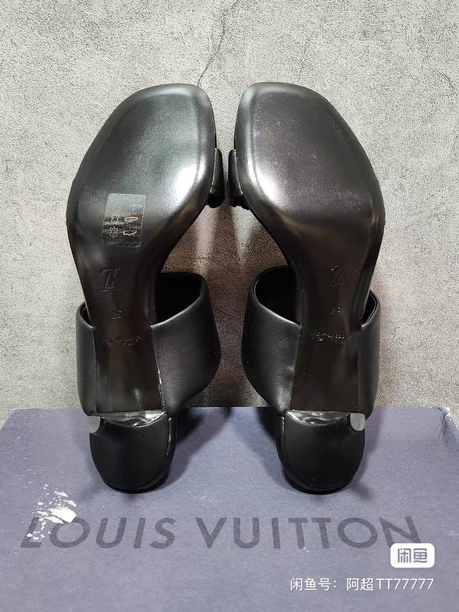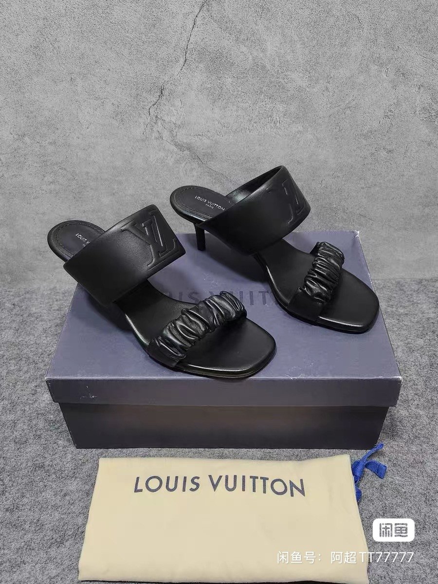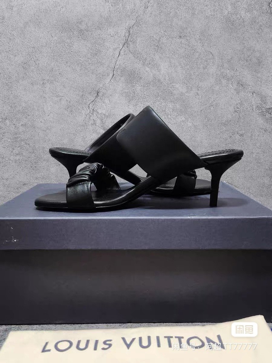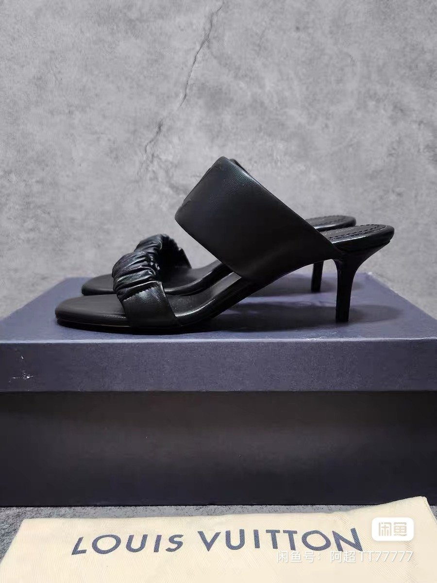Louis Vuitton Drapy Mule Series Black Foot Fashion Slippers. Women's shoes size 37, with a heel height of 5.5cm. Brand-new try-on color, with slight try-on marks on the sole.