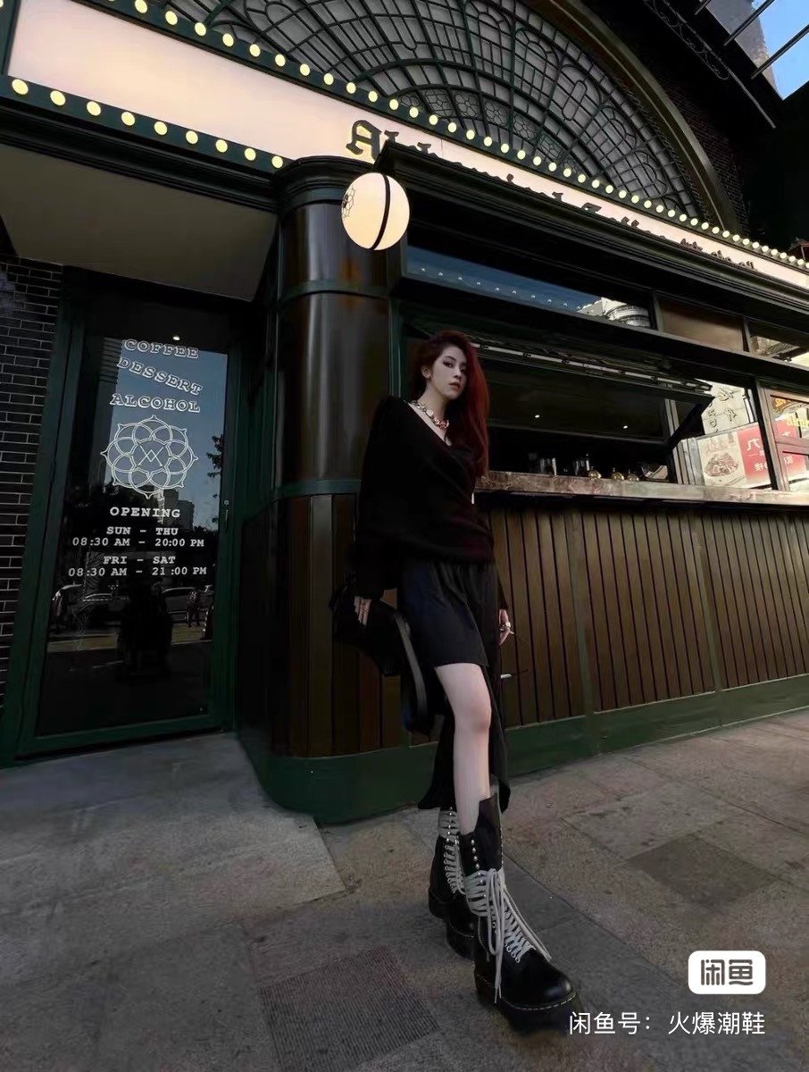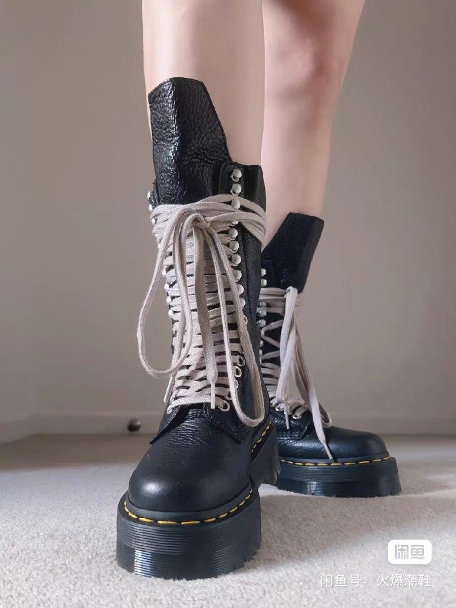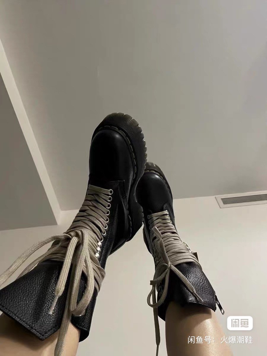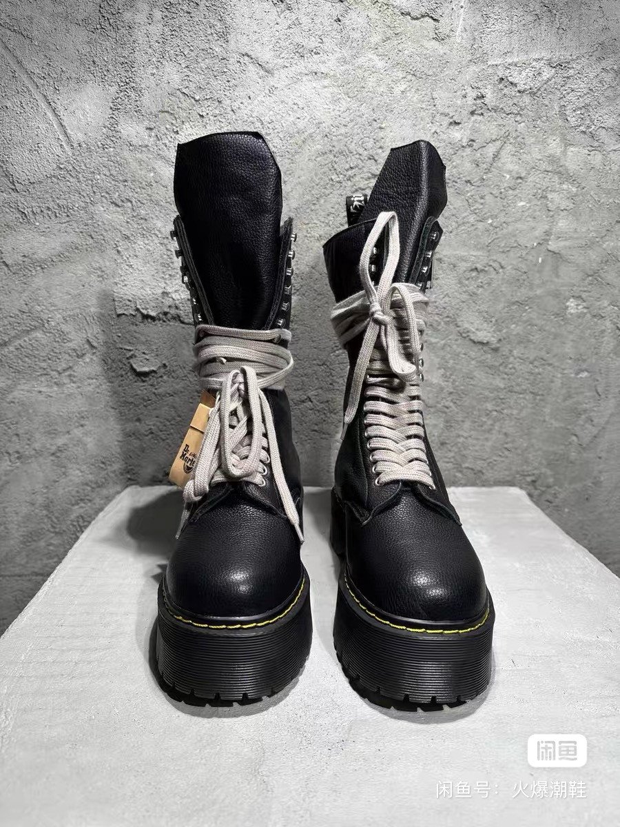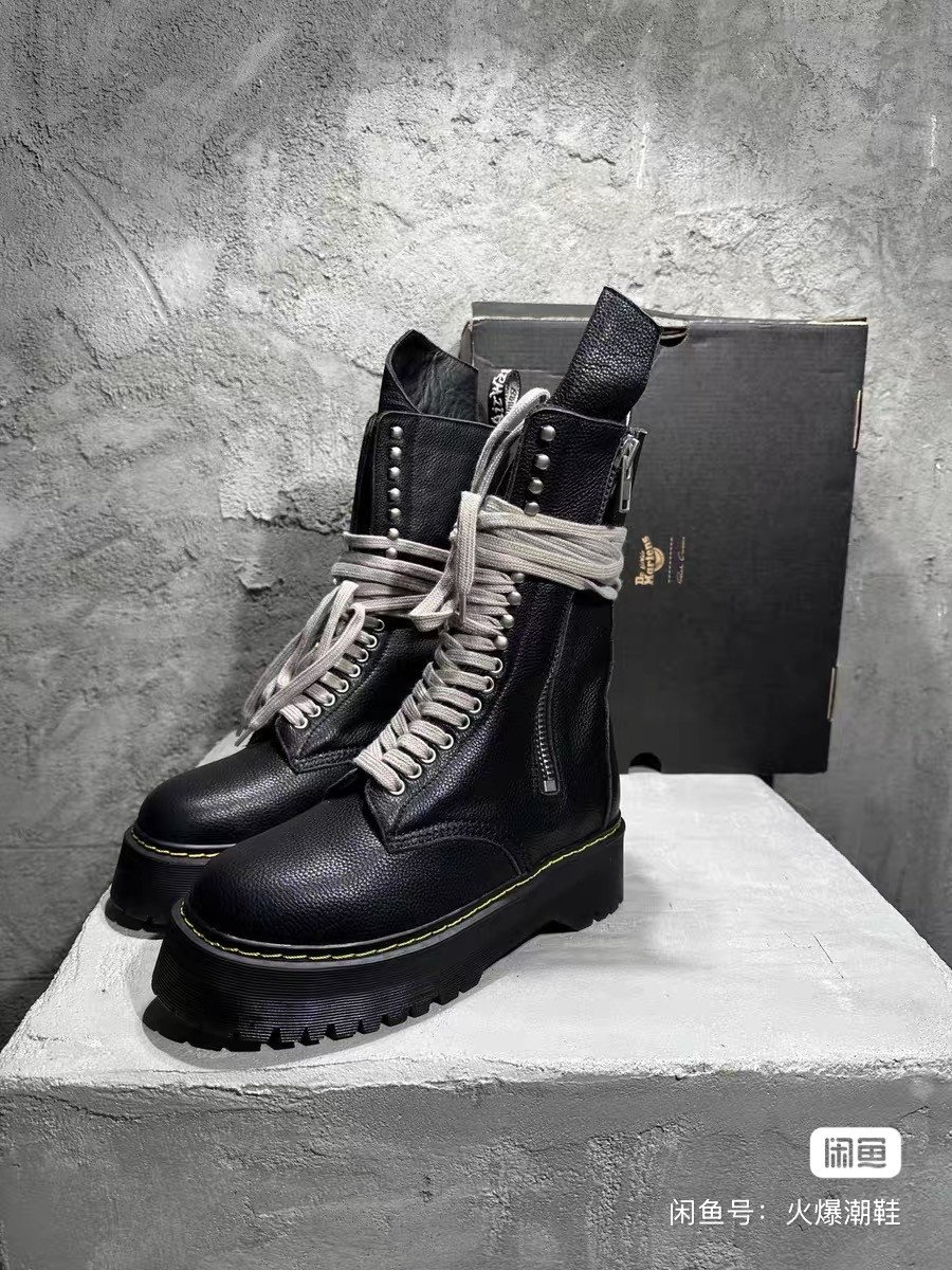 RICK OWENS x Dr.Martin 2023SS co-branded high-top Martin boots, cow tendon soles (very wear-resistant) cow wrestling pattern top layer cowhide upper, water-dyed cowhide lining and insoles, cotton and linen shoelaces, corn tooth metal zipper, sole edge mechanical online, SIZE: 35-46, boys according to normal size, girls buy one size smaller, spot delivery in seconds