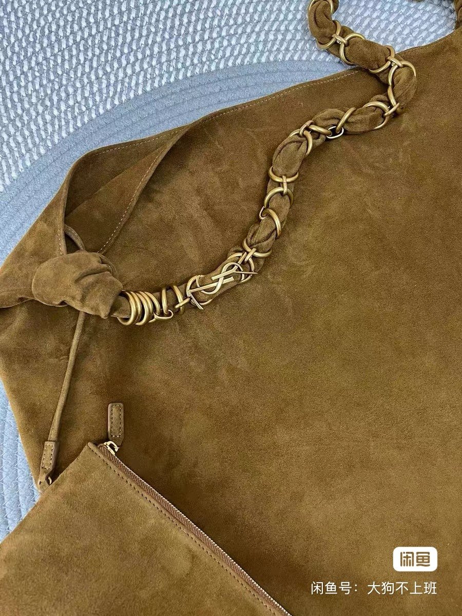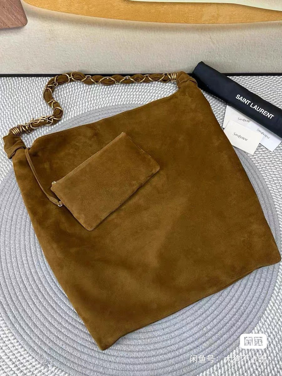 New Saint Laurent AMALIA suede handbag, woven LE CASSANDRE chain, with zipper bag inside. Size 45x47cm, purchased from the brand counter, with warranty card and dustproof bag. High-end relaxation, hippie style. If you are interested, please contact us quickly.