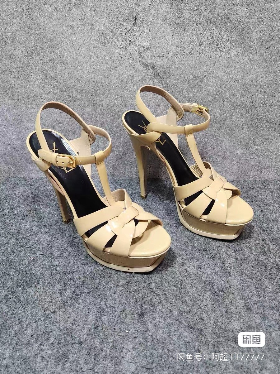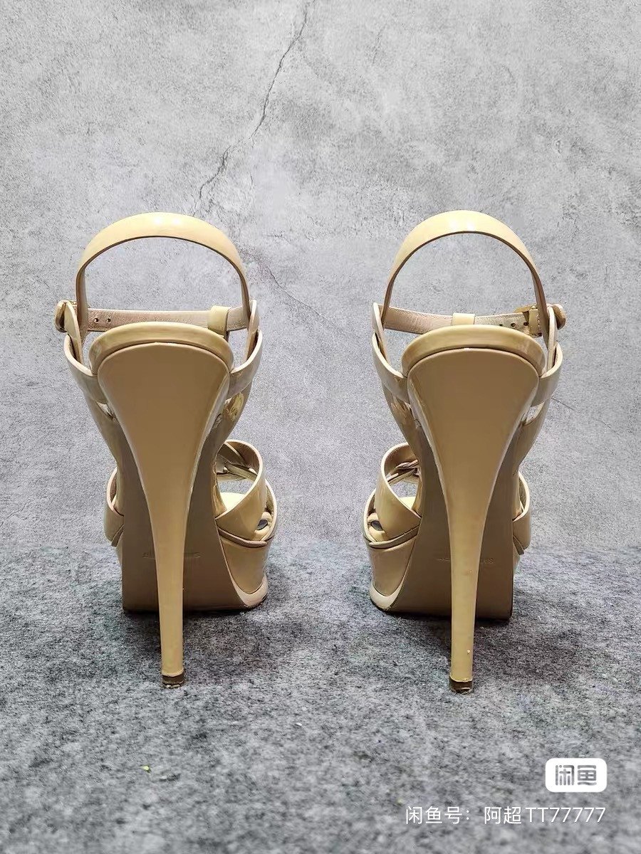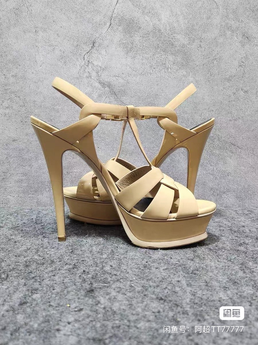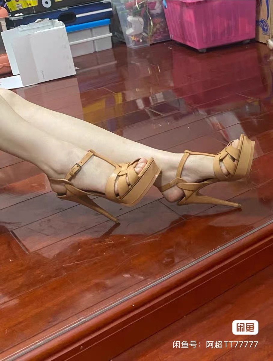 Saint Laurent Tribute Series Nude Leather Round Toe Open Toe High Heels Water Platform One-word Strap Sandals High Heels. Women's shoes are size 38, the heel height is 13cm, and the water platform is 3cm high.