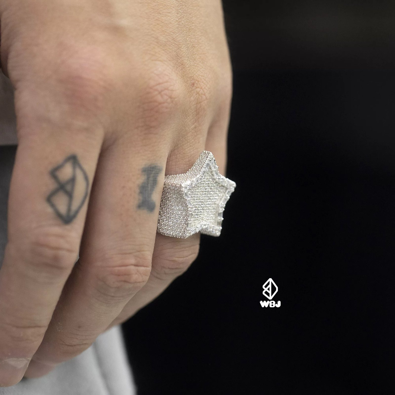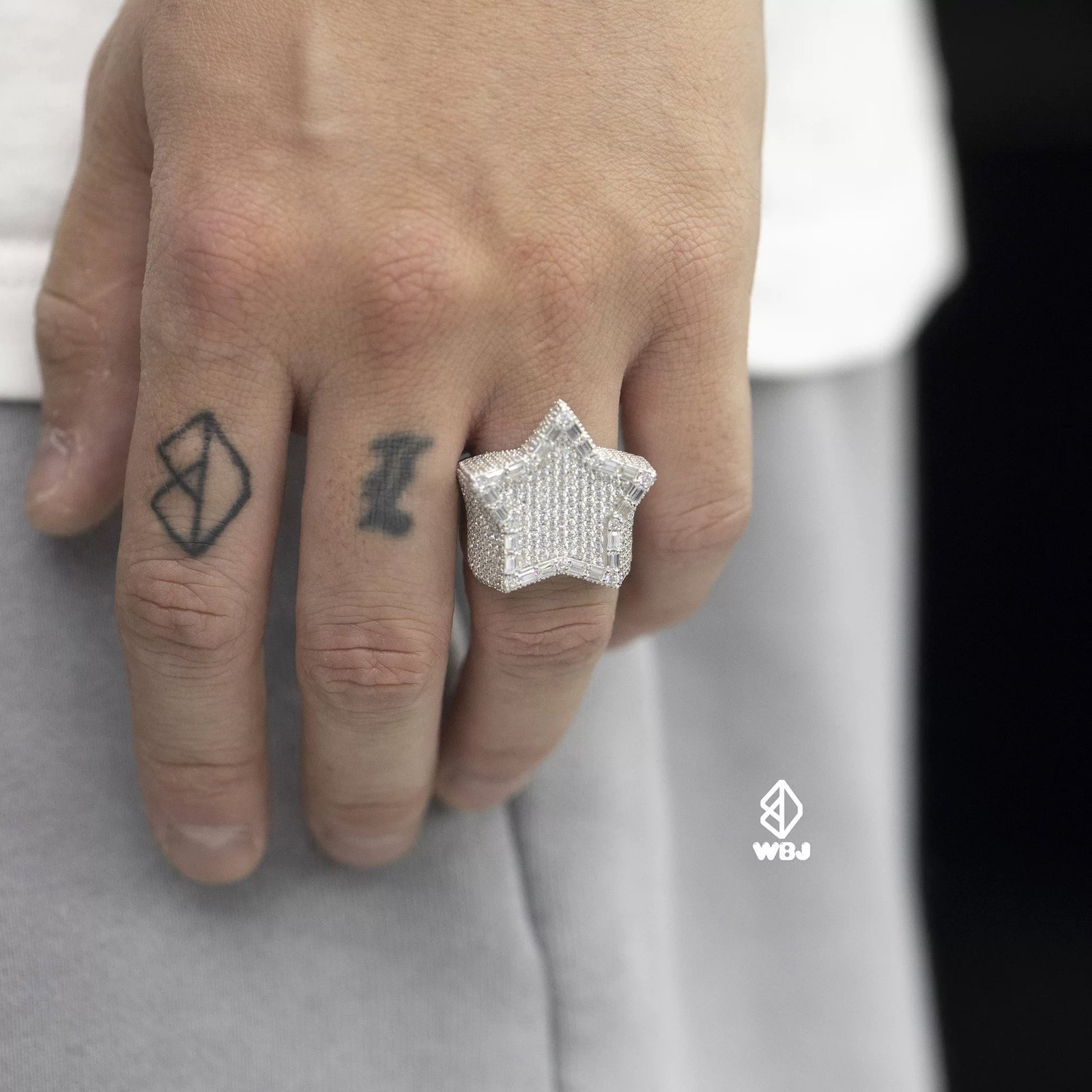 WBJ customized jewelry neon five-pointed star ring T-square five-pointed star 925 silver gold-plated star ring