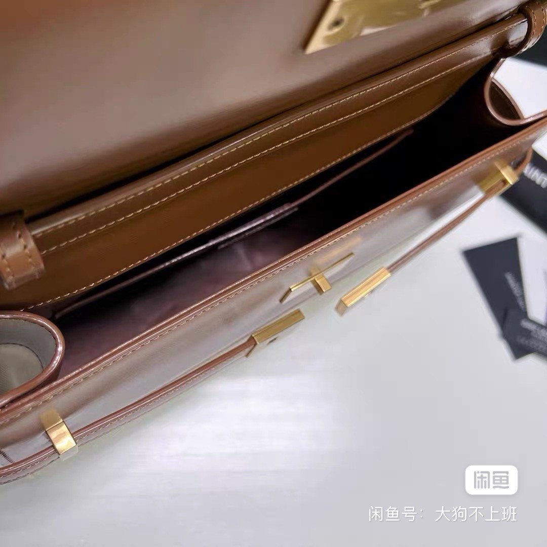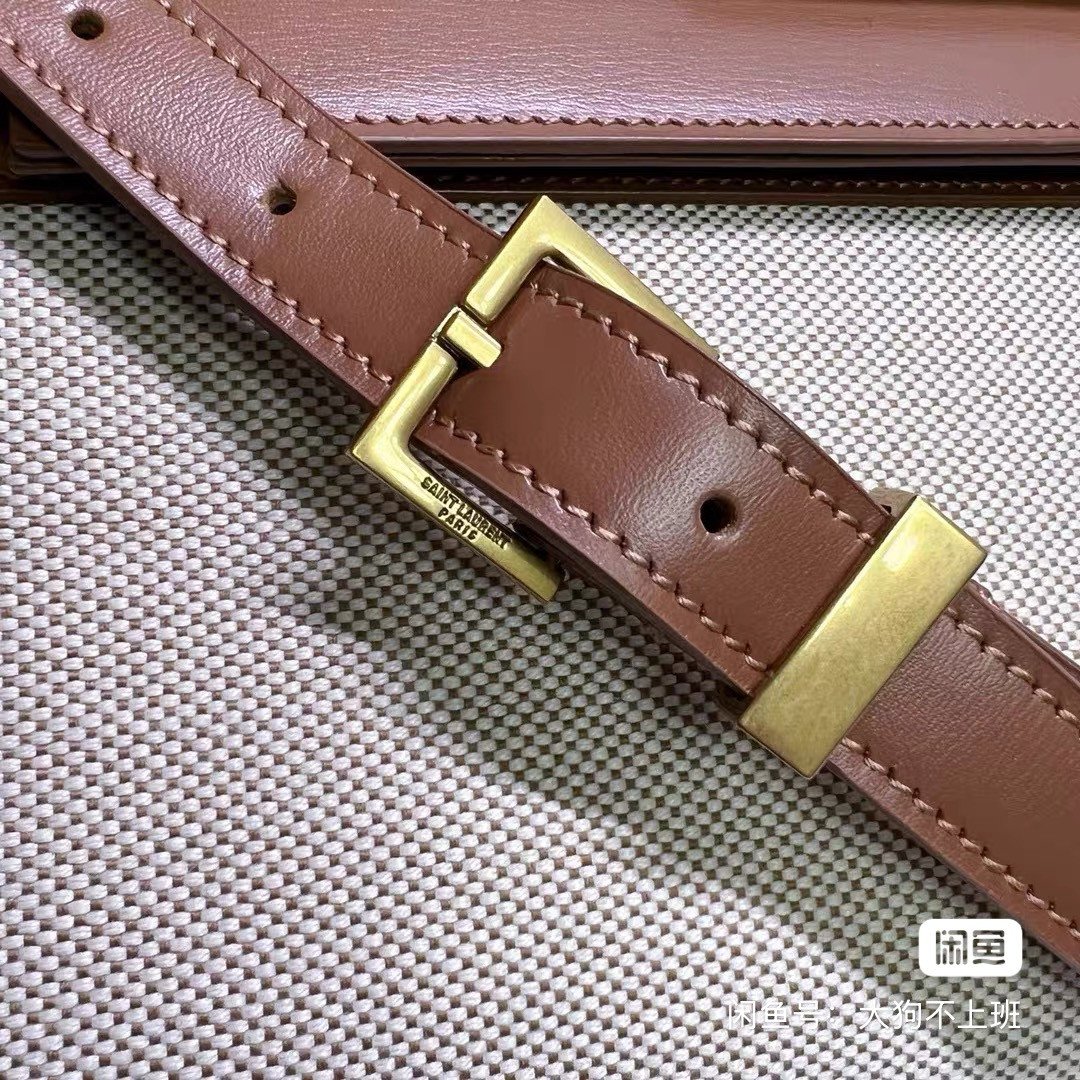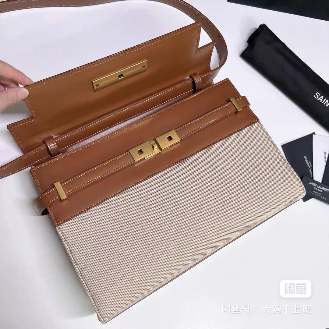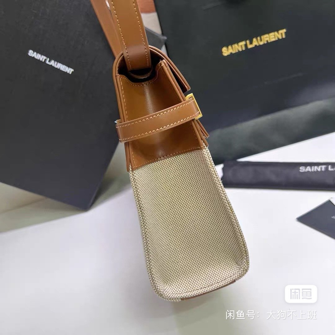 YSL Saint-Roland Manhattan bag, caramel cowhide with beige canvas, classic three-button design, size 29*20cm, with a full set of counter boxes and dustproof bags.